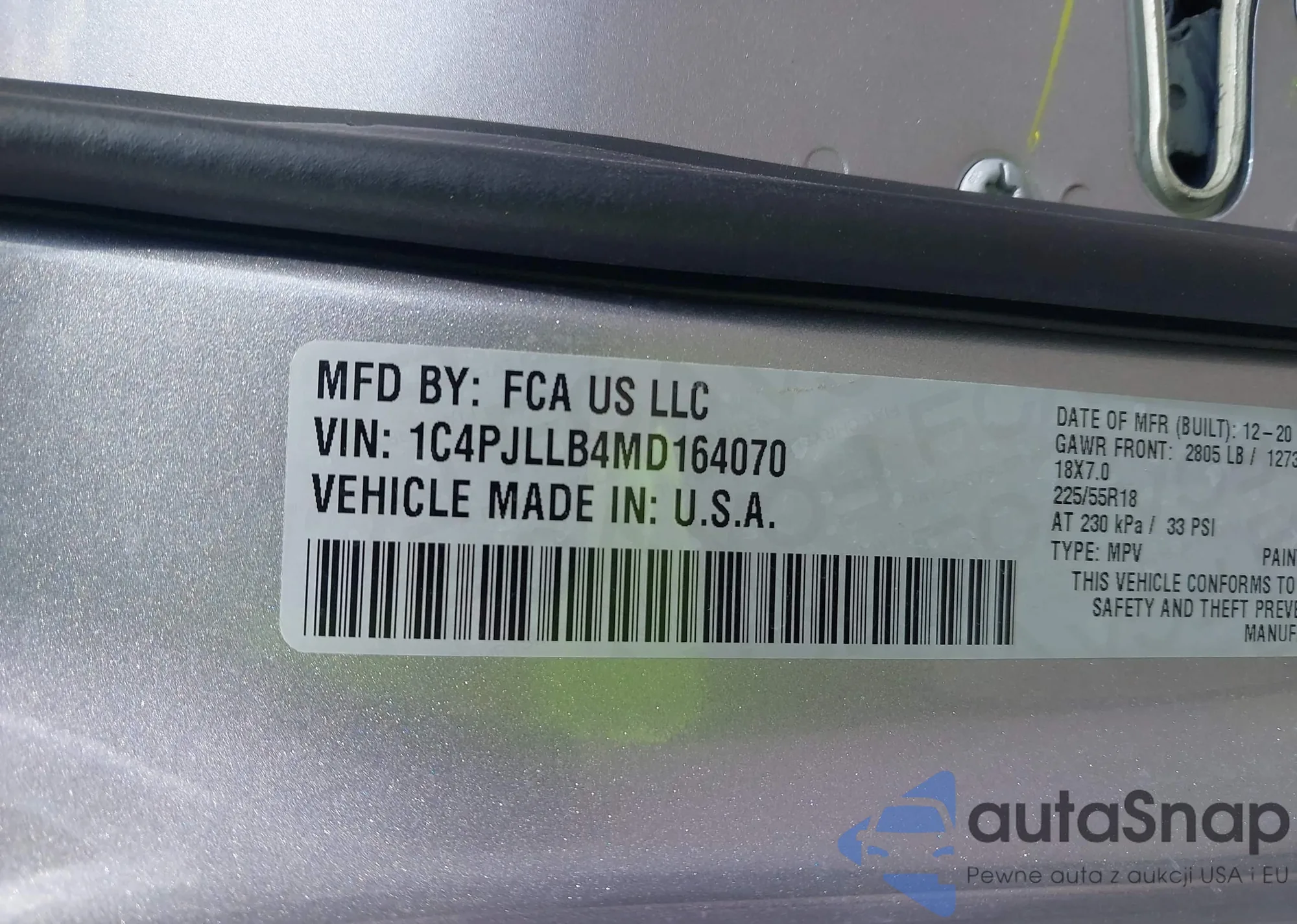 • VIN 1C4PJLLB4MD164070