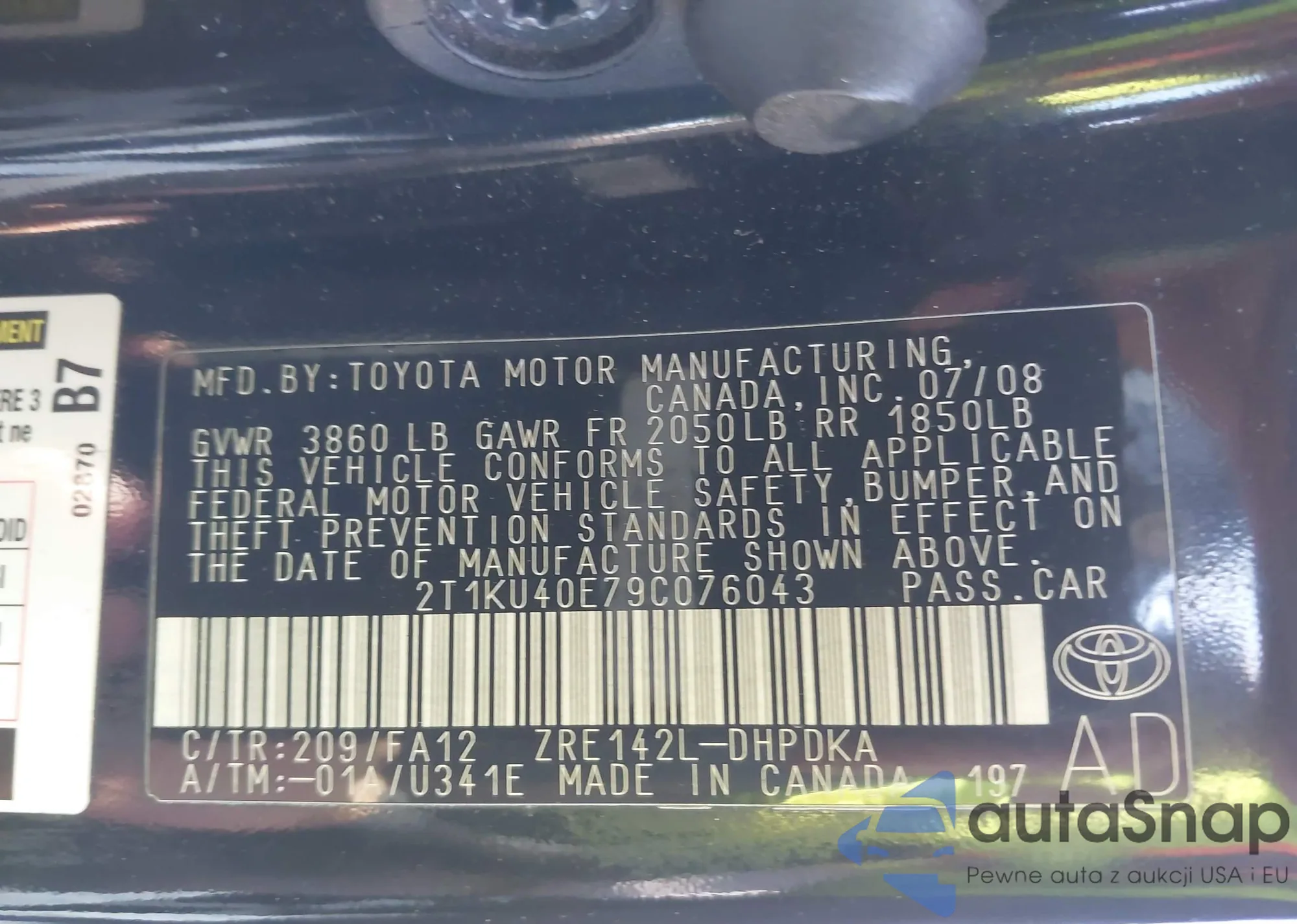LOT: 41833077 VIN: 2T1KU40E79C076043