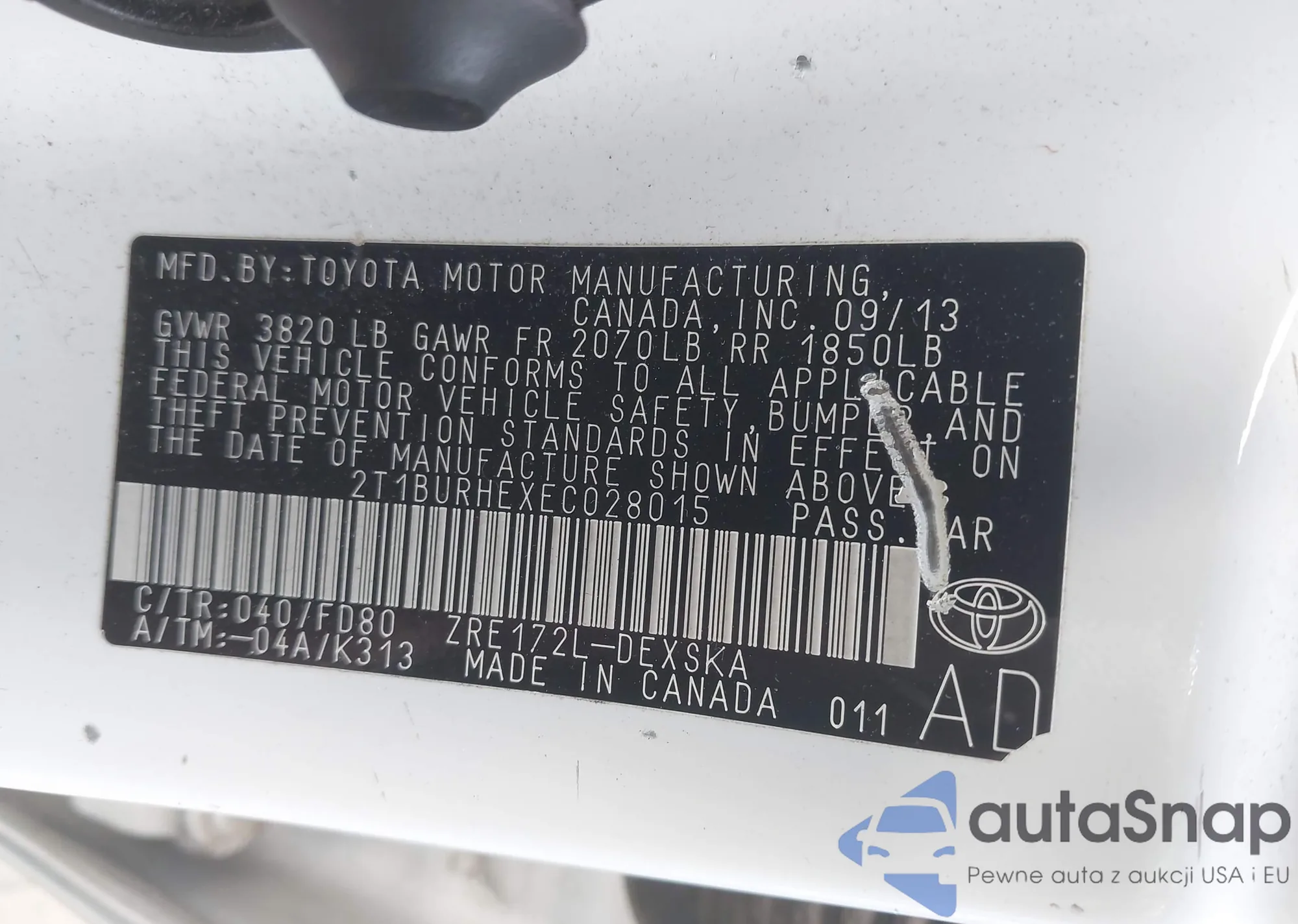 • VIN 2T1BURHEXEC028015