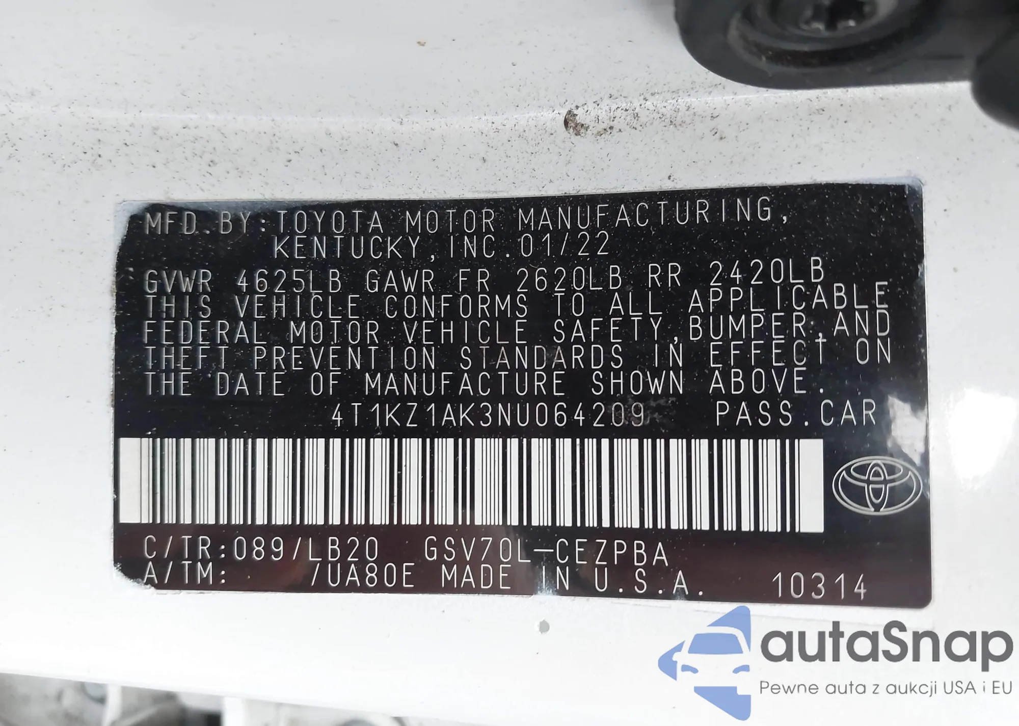 • VIN 4T1KZ1AK3NU064209