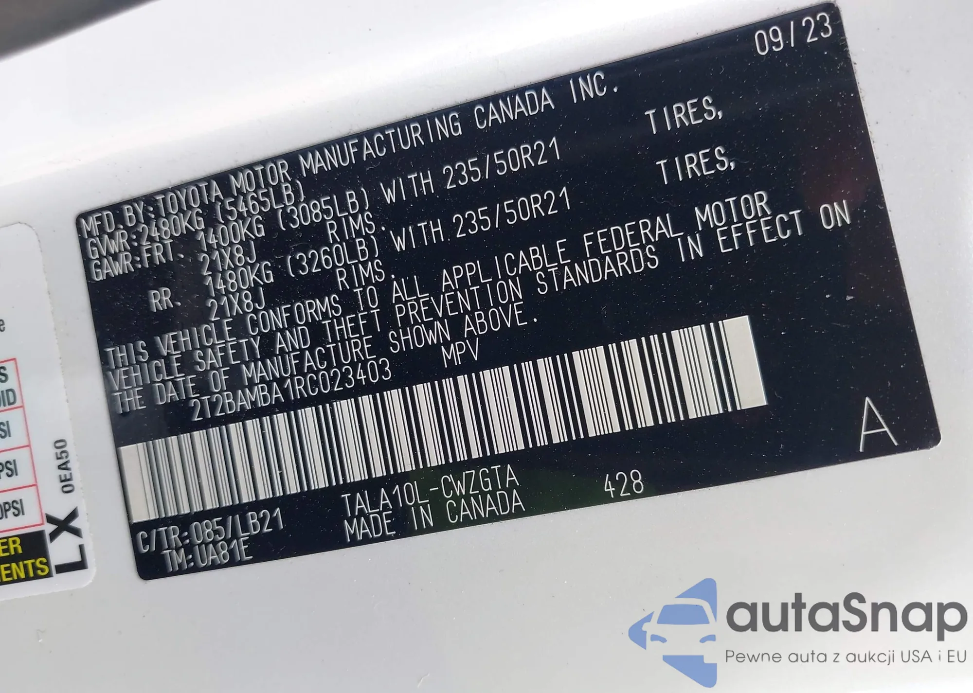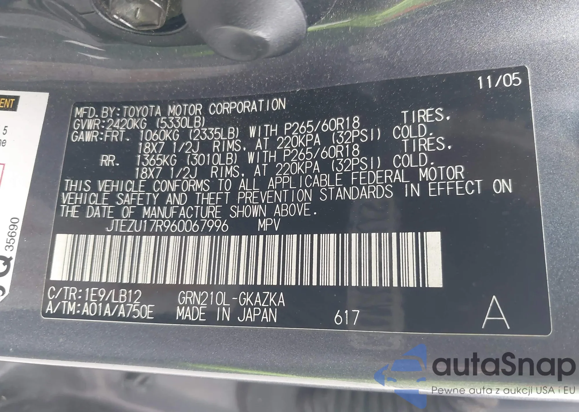 LOT: 43211079 VIN: JTEZU17R960067996