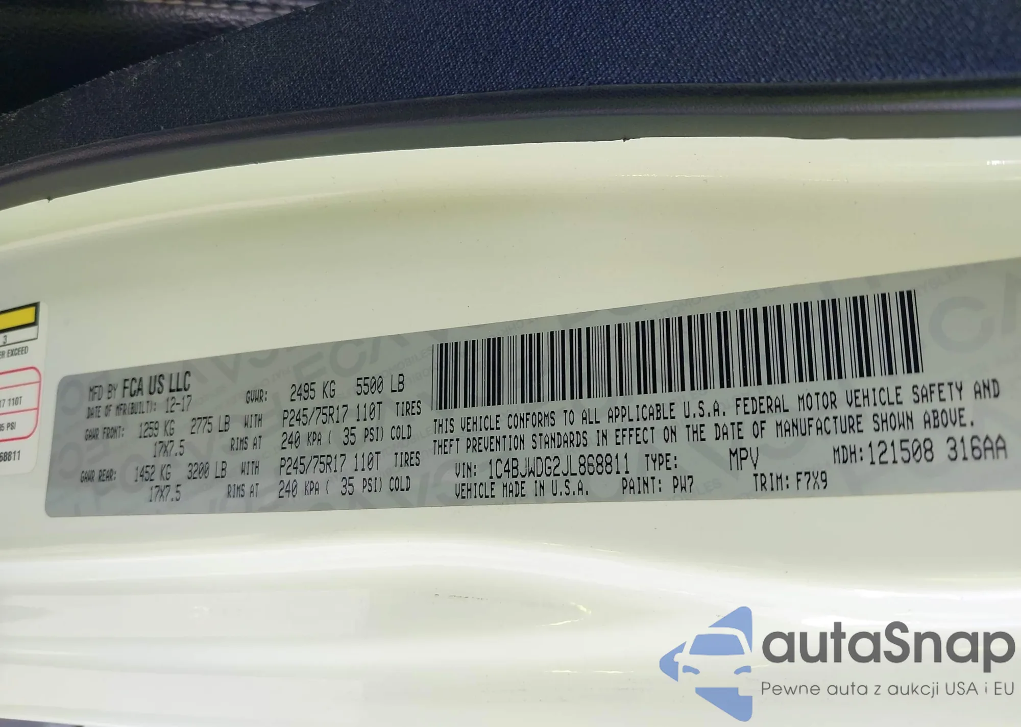 LOT: 43069780 VIN: 1C4BJWDG2JL868811