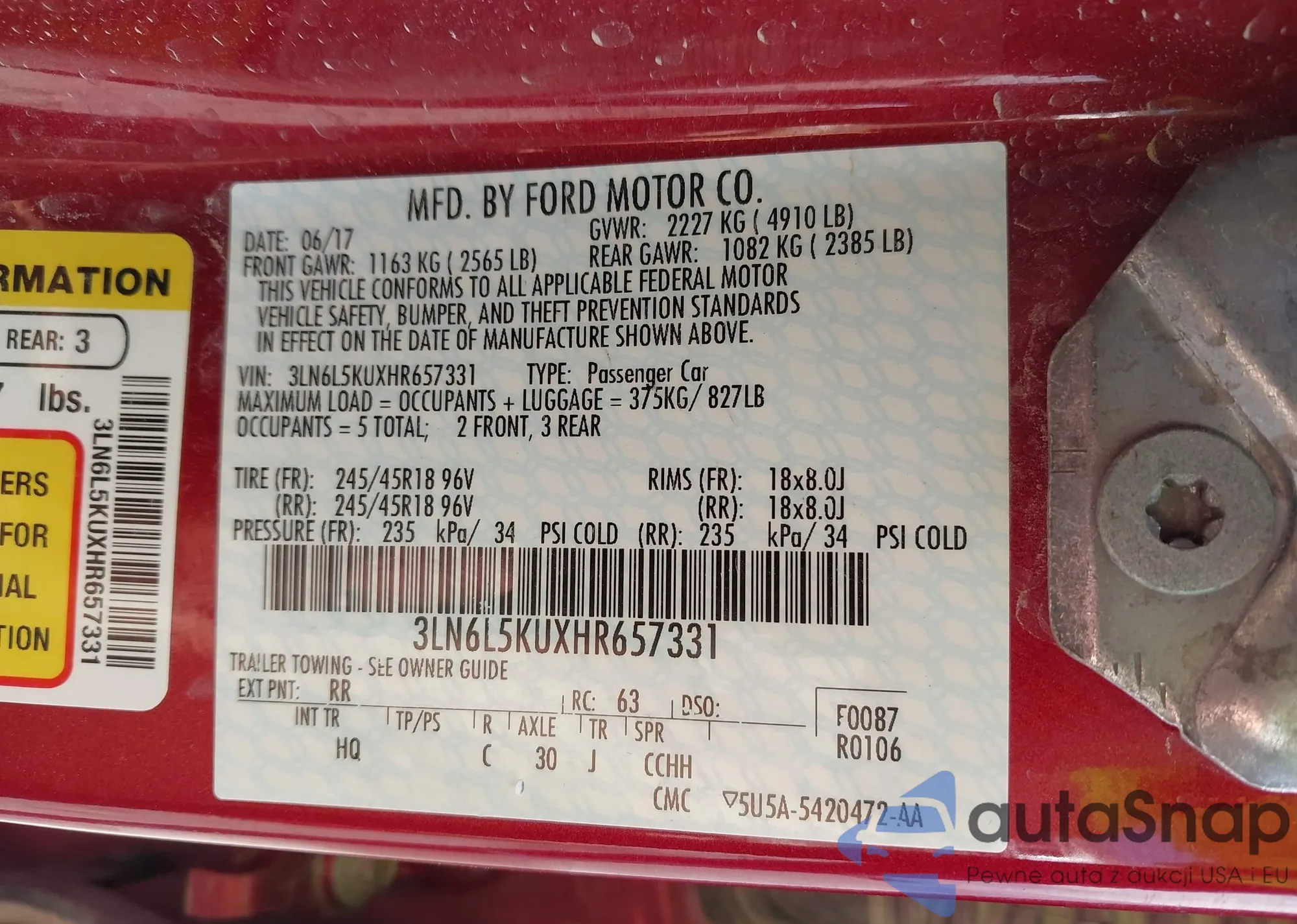 LOT: 42789759 VIN: 1FATP8UH2N5107851