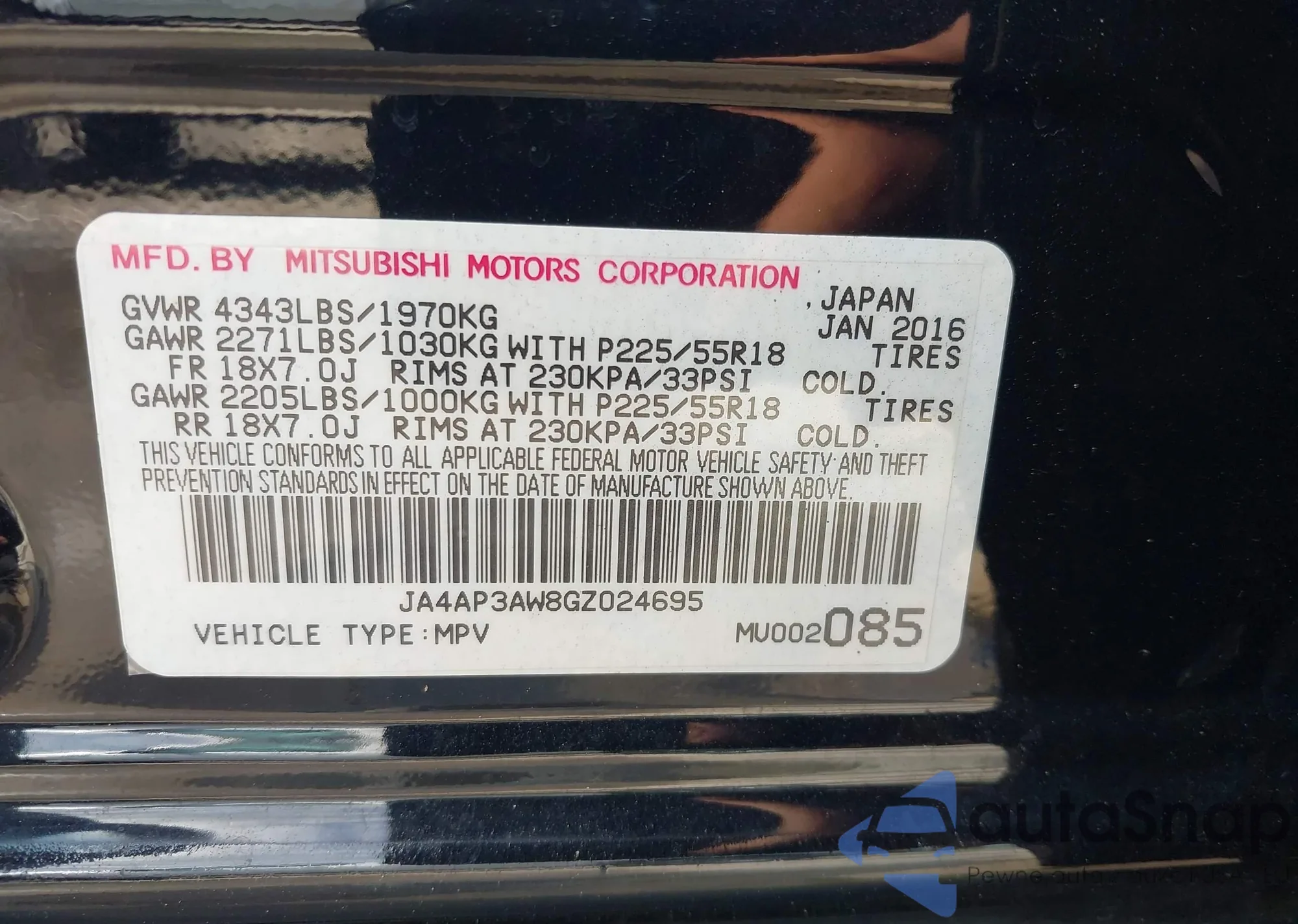 LOT: 43135978 VIN: JA4AP3AW8GZ024695