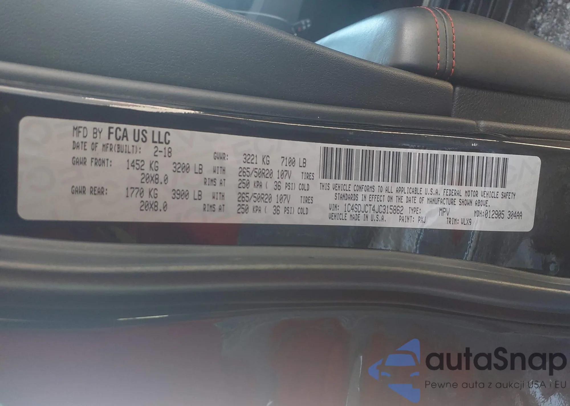 • VIN 1C4BJWDG2JL868811