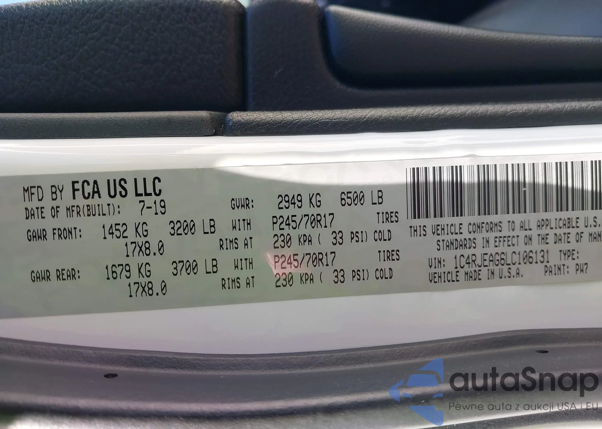 • VIN 1C4RJEAG6LC106131