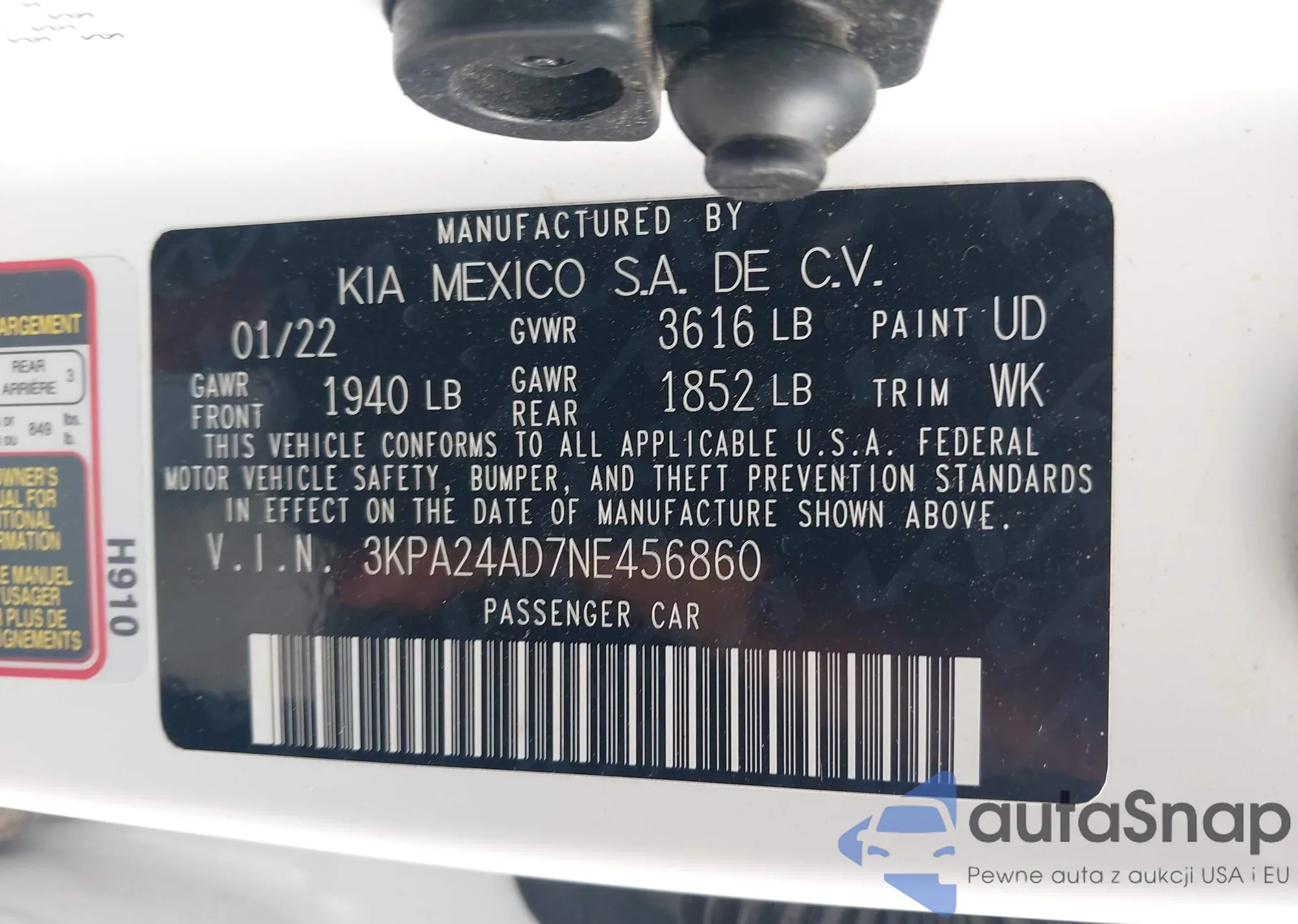 • VIN 3KPA24AD7NE456860
