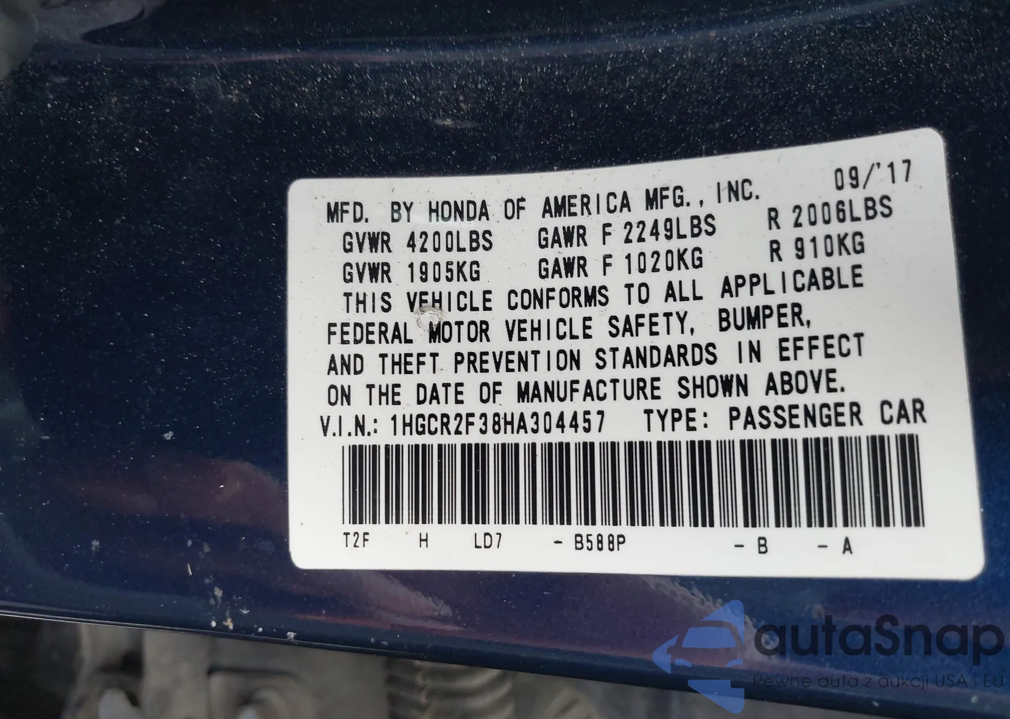• VIN 1HGCR2F38HA304457
