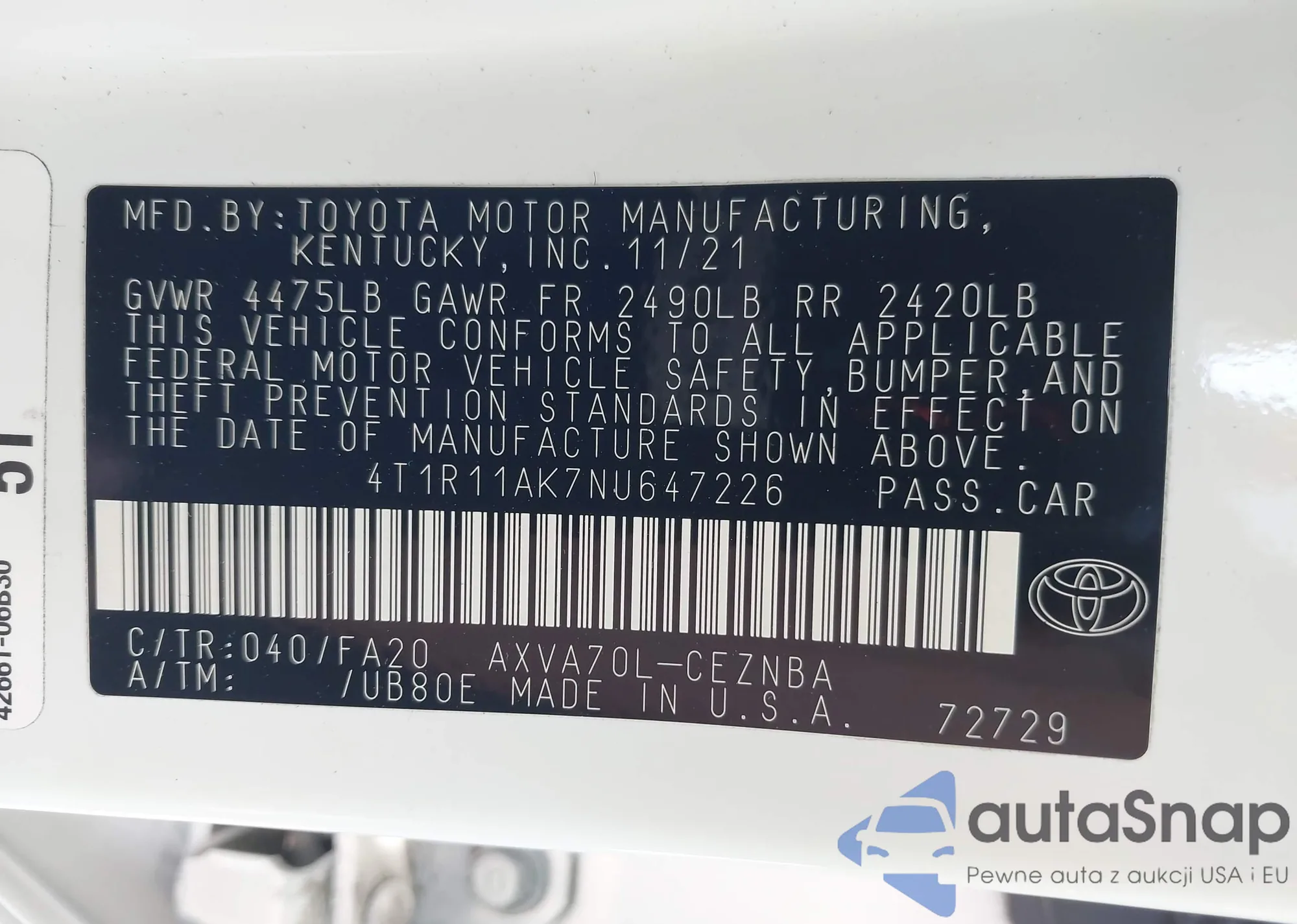 LOT: 42977436 VIN: 4T1G11AK6RU262771
