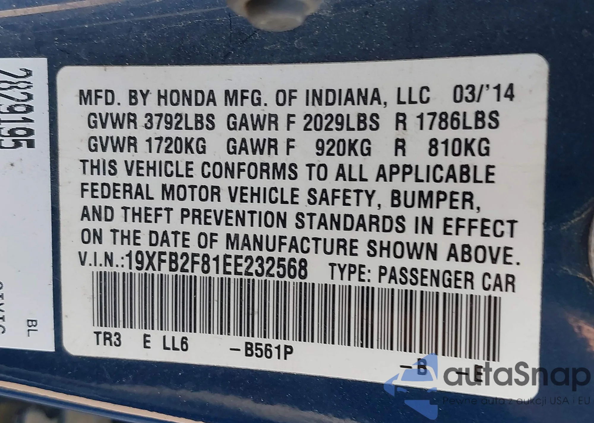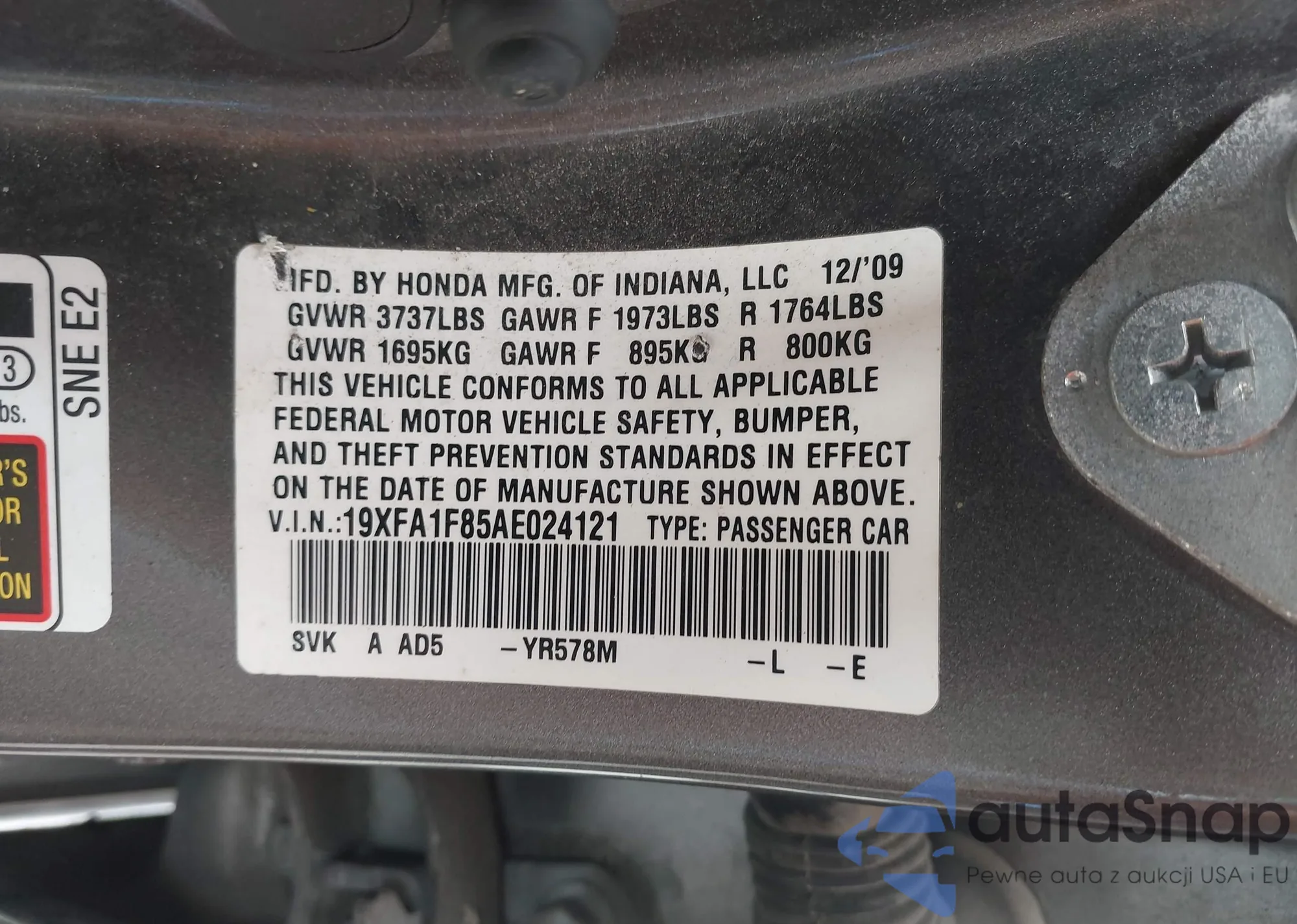 • VIN 19XFA1F85AE024121
