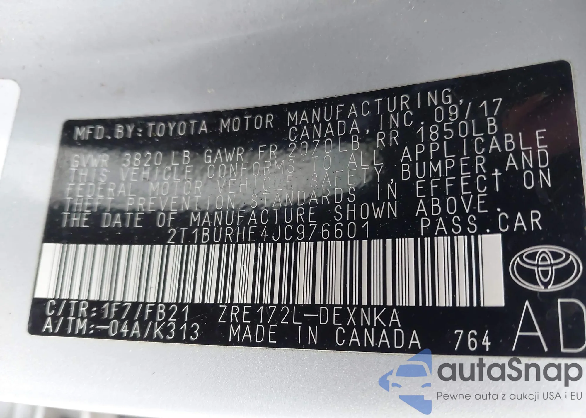 • VIN 2T1BURHE4JC976601