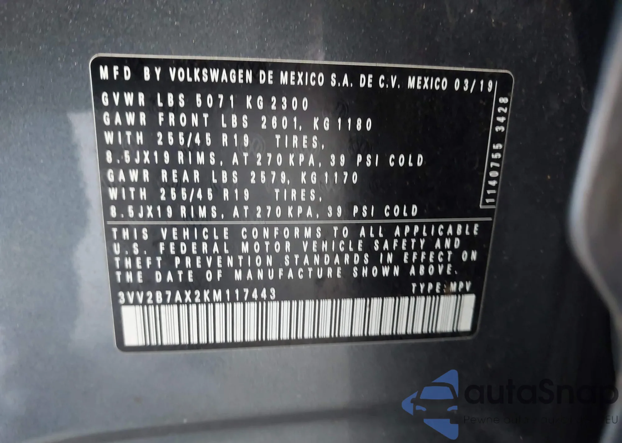 • VIN 3VV2B7AX2KM117443