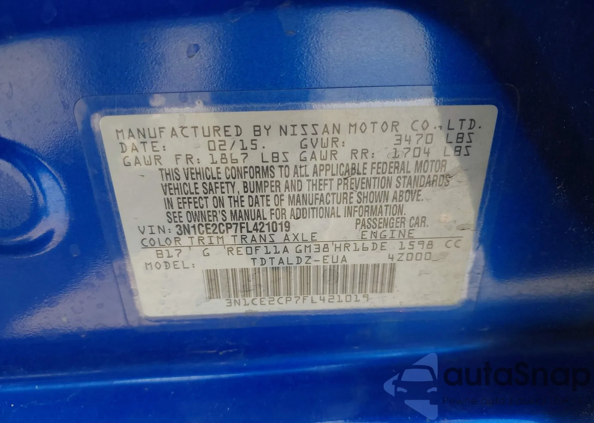 • VIN 3N1CN8DV4LL884649