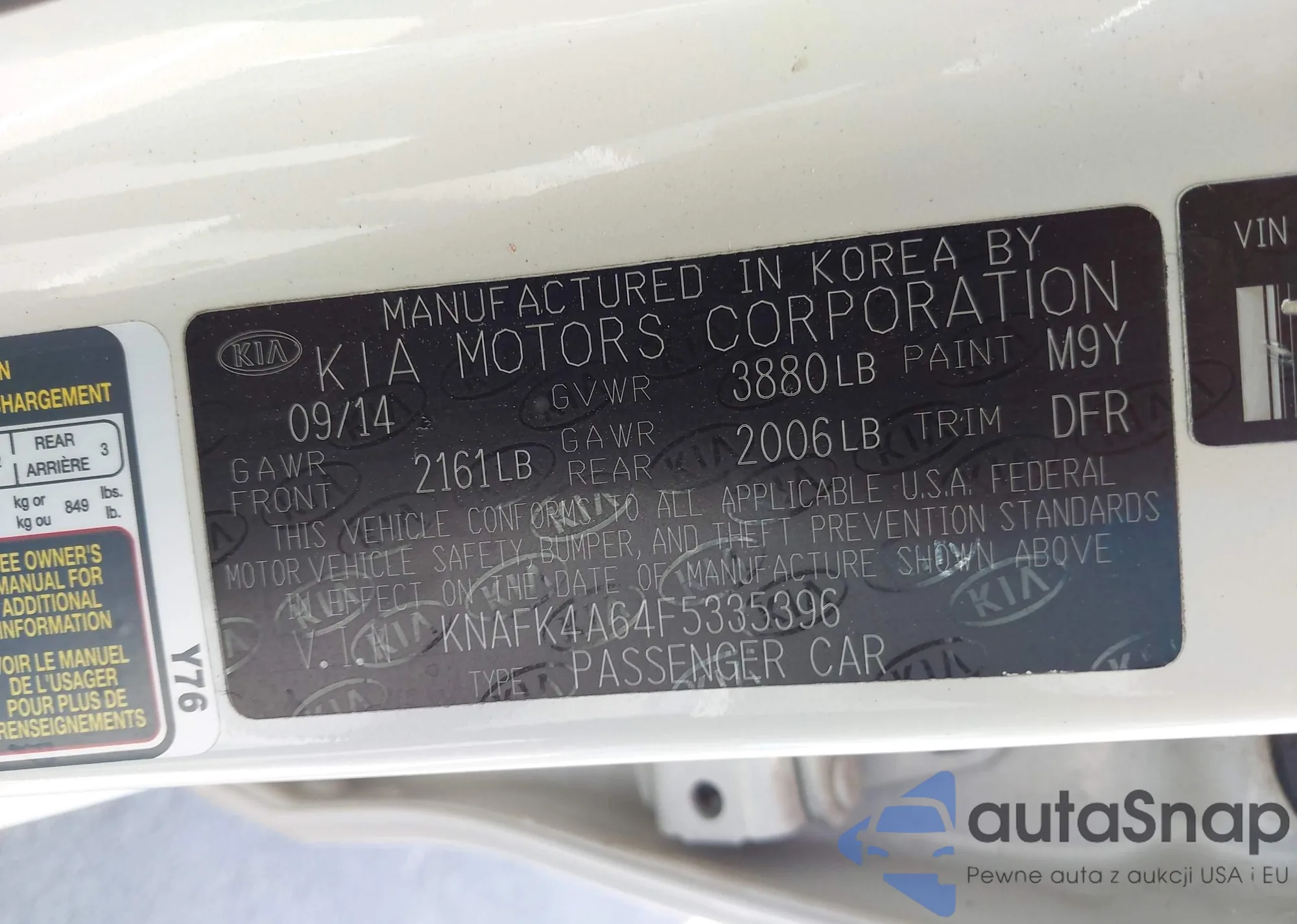 LOT: 43215985 VIN: KNAFK4A64F5335396