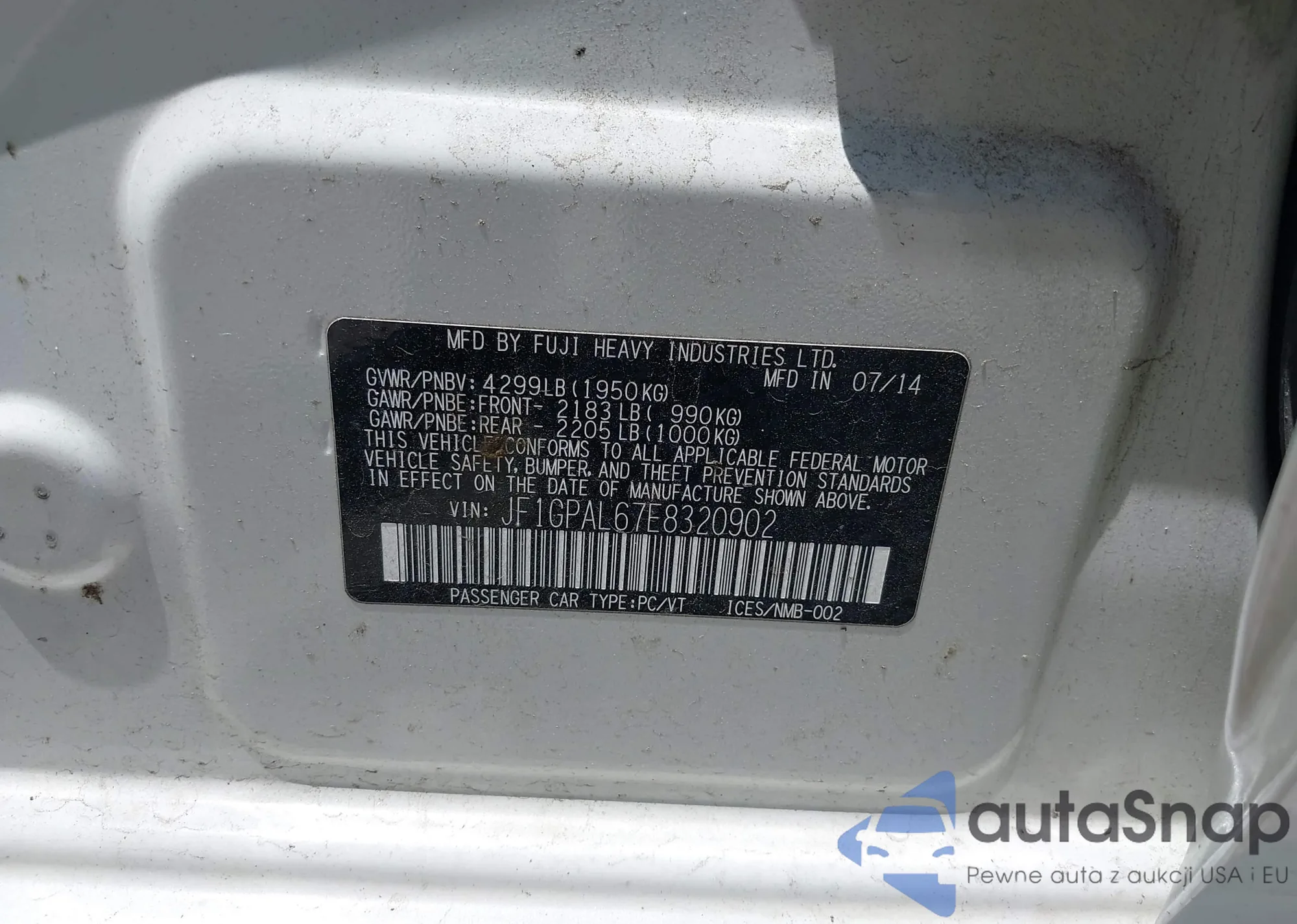 • VIN JF1GPAL67E8320902