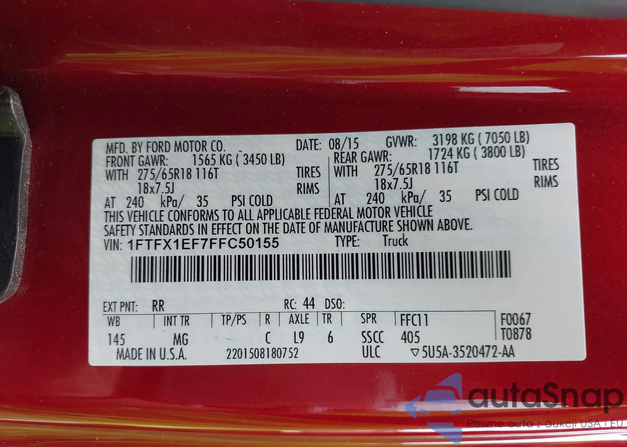• VIN 1FTFX1EF7FFC50155