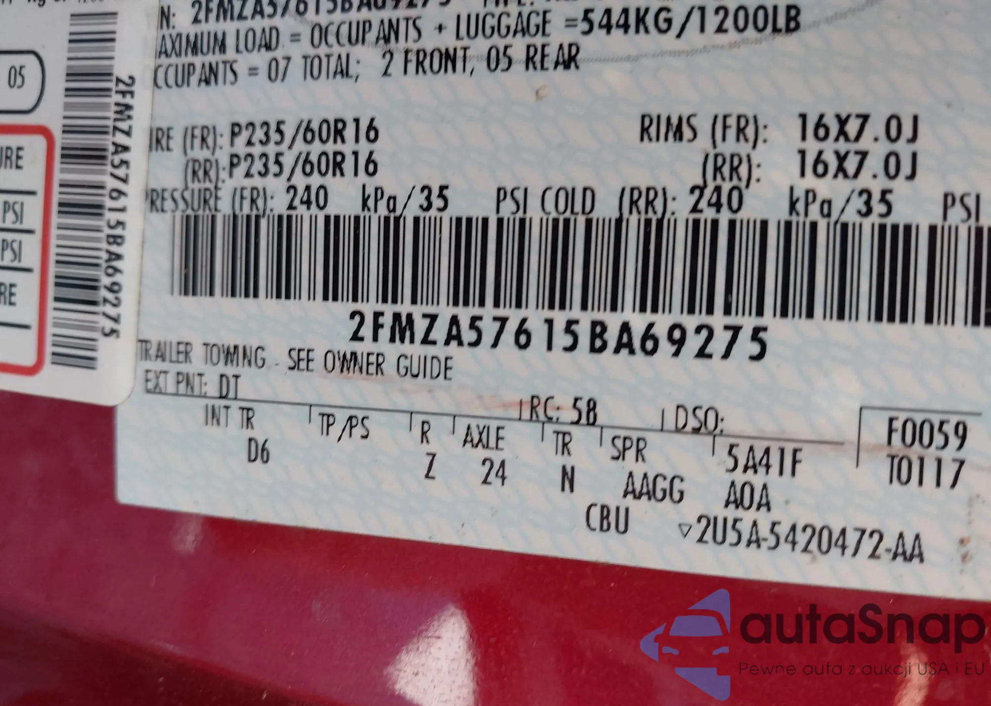 • VIN 2FMZA57615BA69275