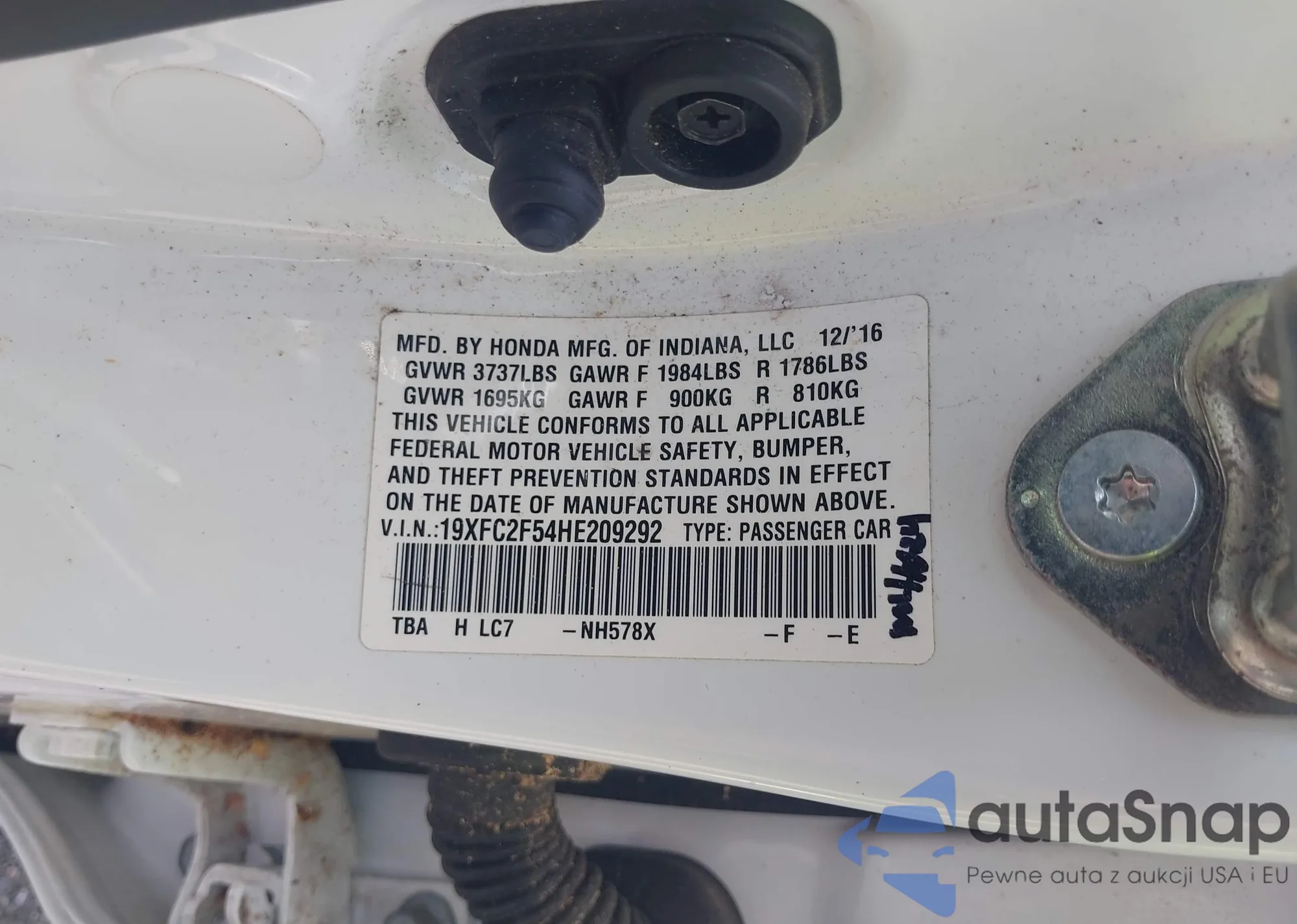 • VIN 19XFA16549E018523