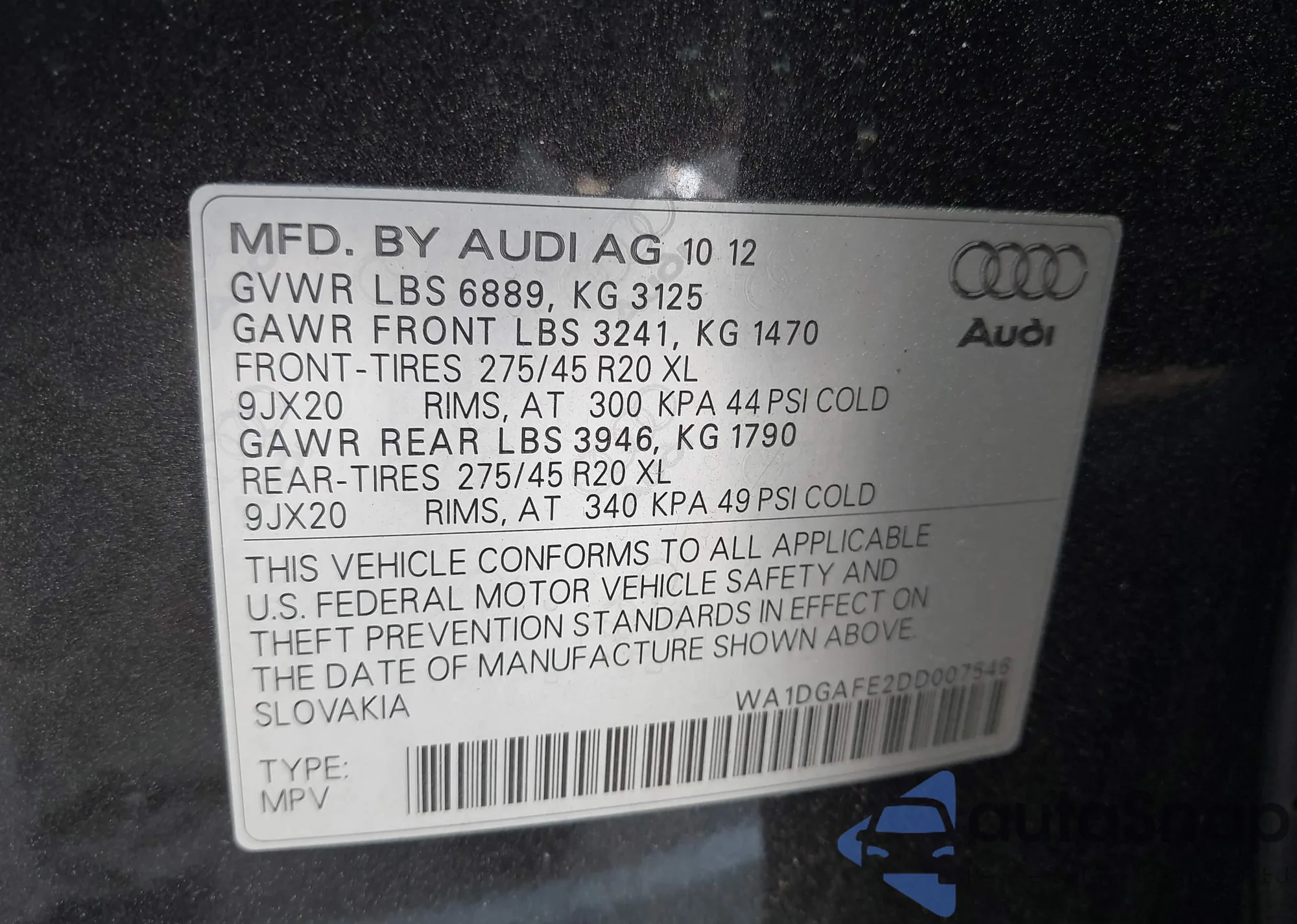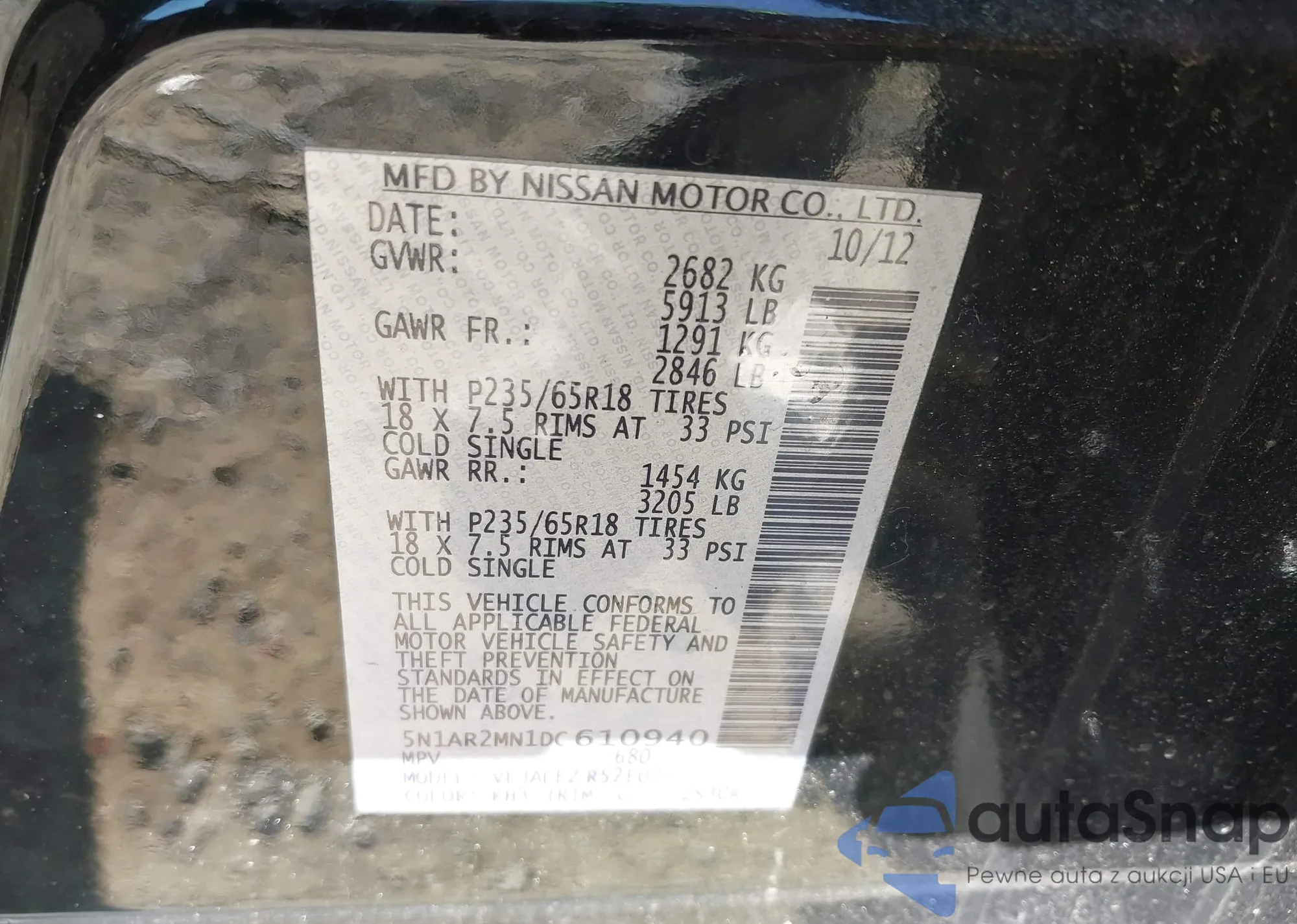 • VIN 5N1AR2MN1DC610940