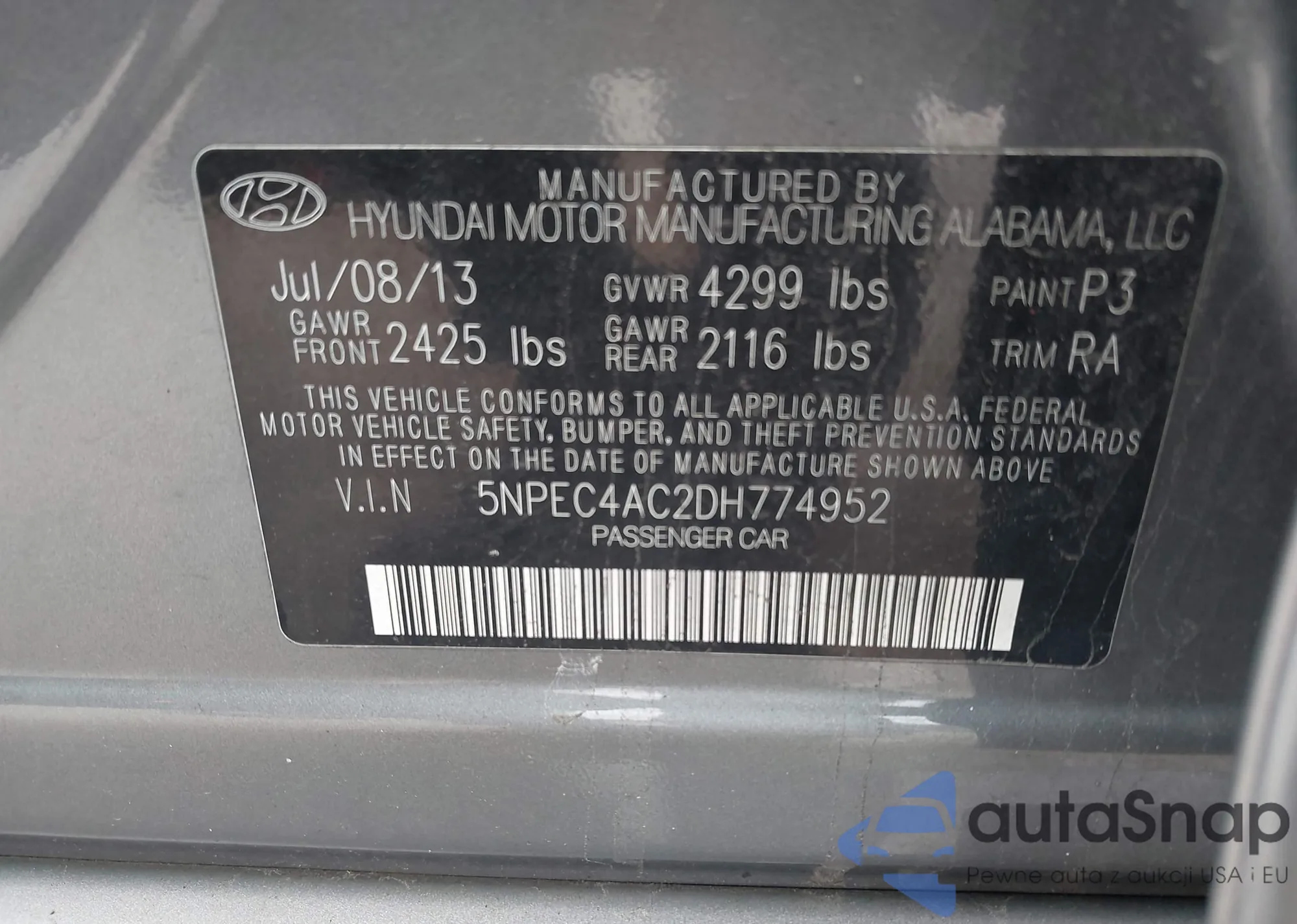 • VIN 5NPEC4AC2DH774952