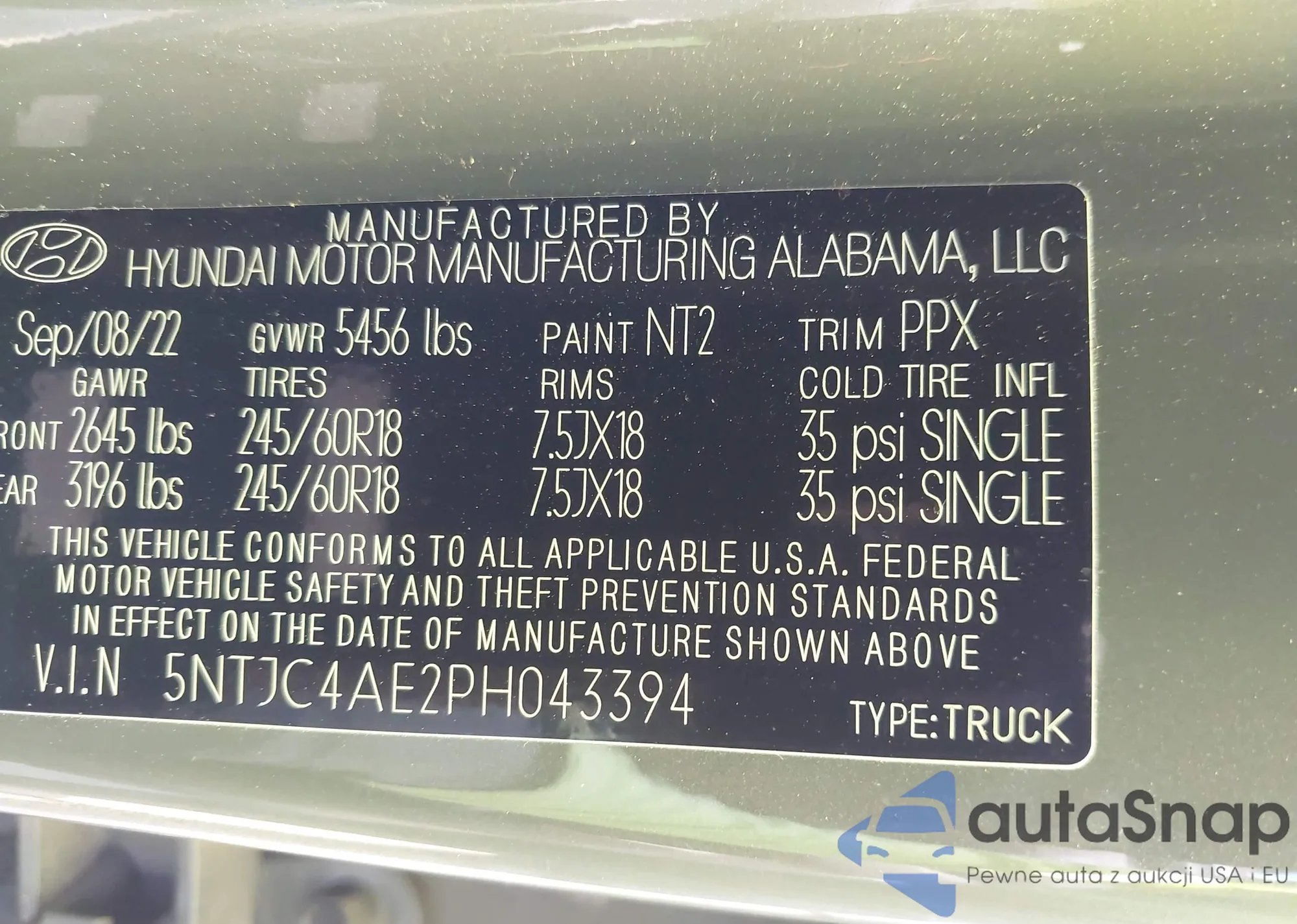 • VIN 5NTJC4AE2PH043394