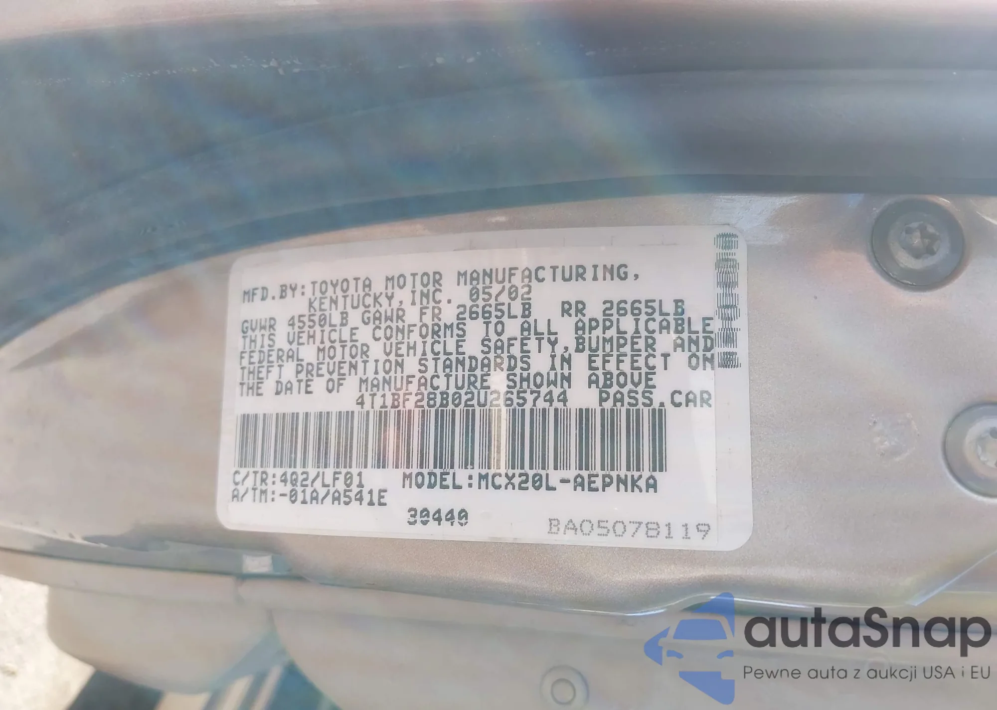 LOT: 43061307 VIN: 4T1BF28B02U265744