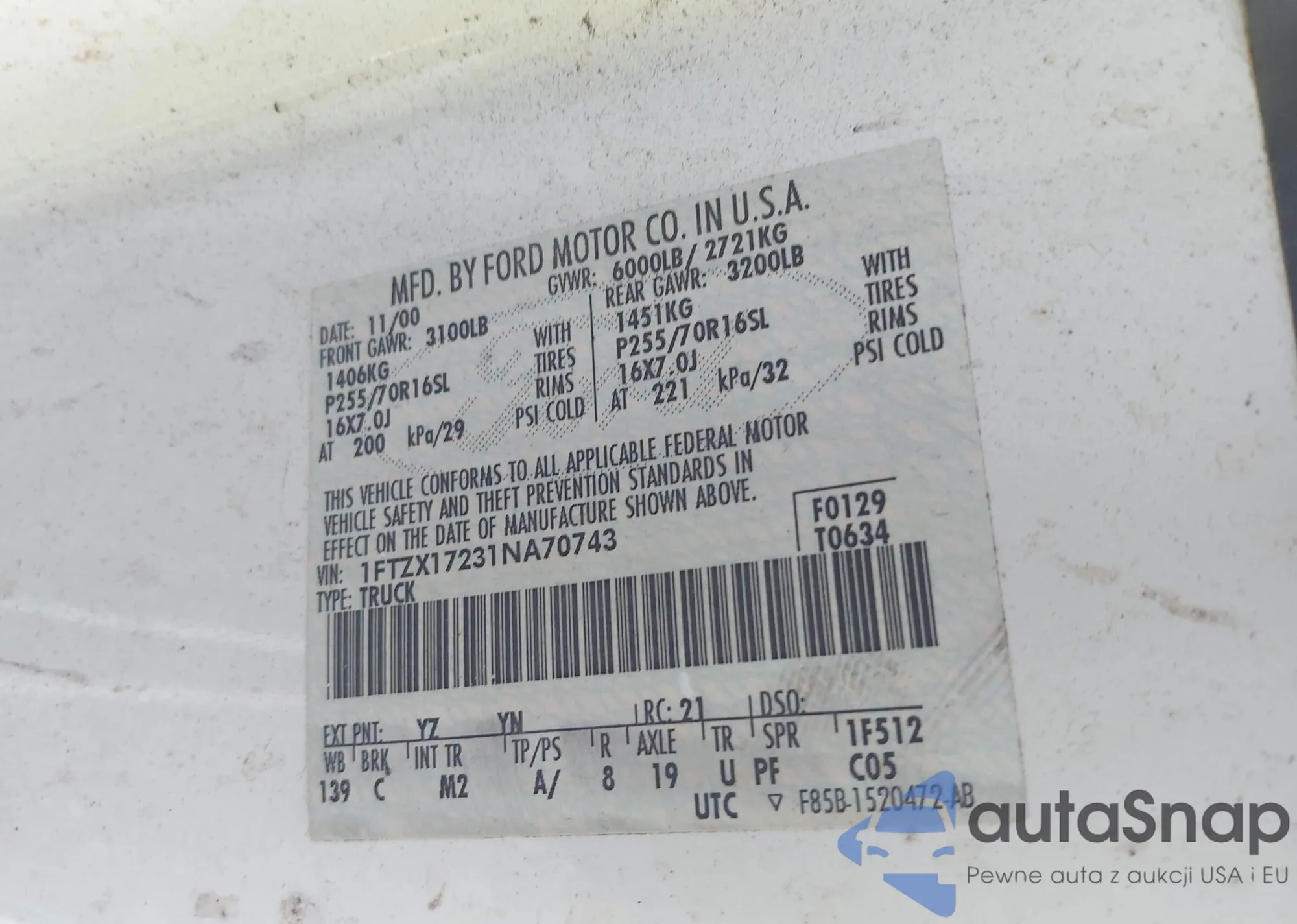 LOT: 43111801 VIN: 4TAPM62N8XZ407984