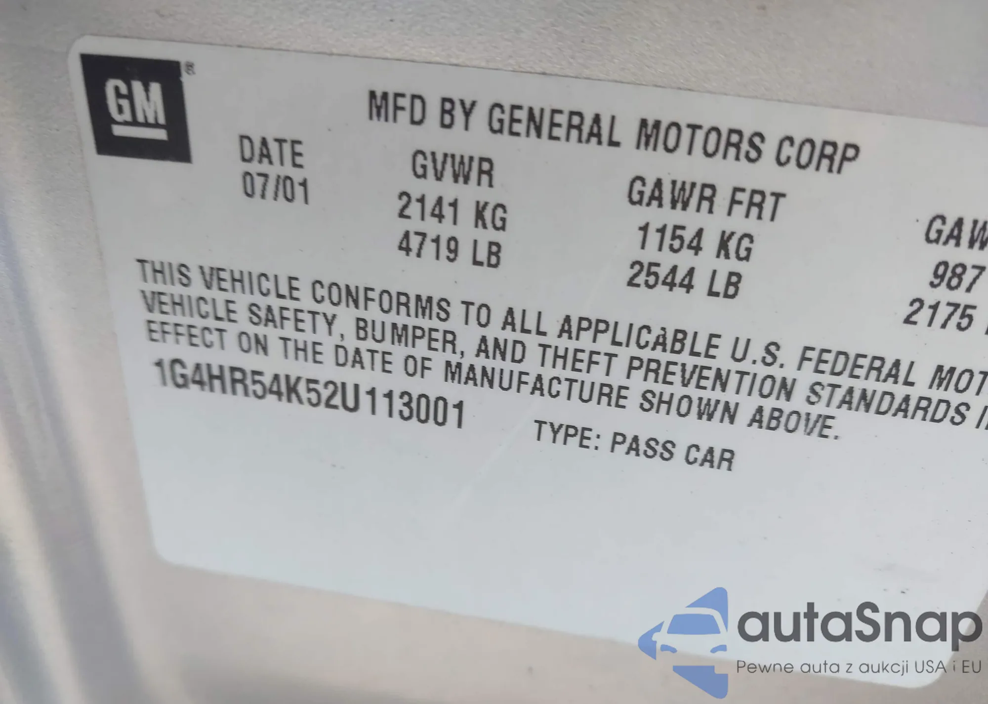 LOT: 43104796 VIN: 1G4HR54K52U113001