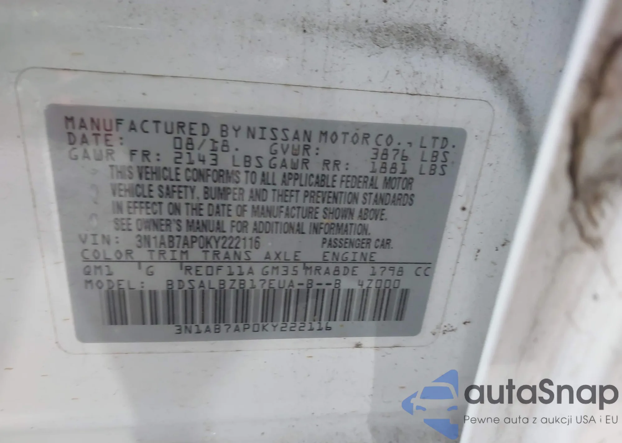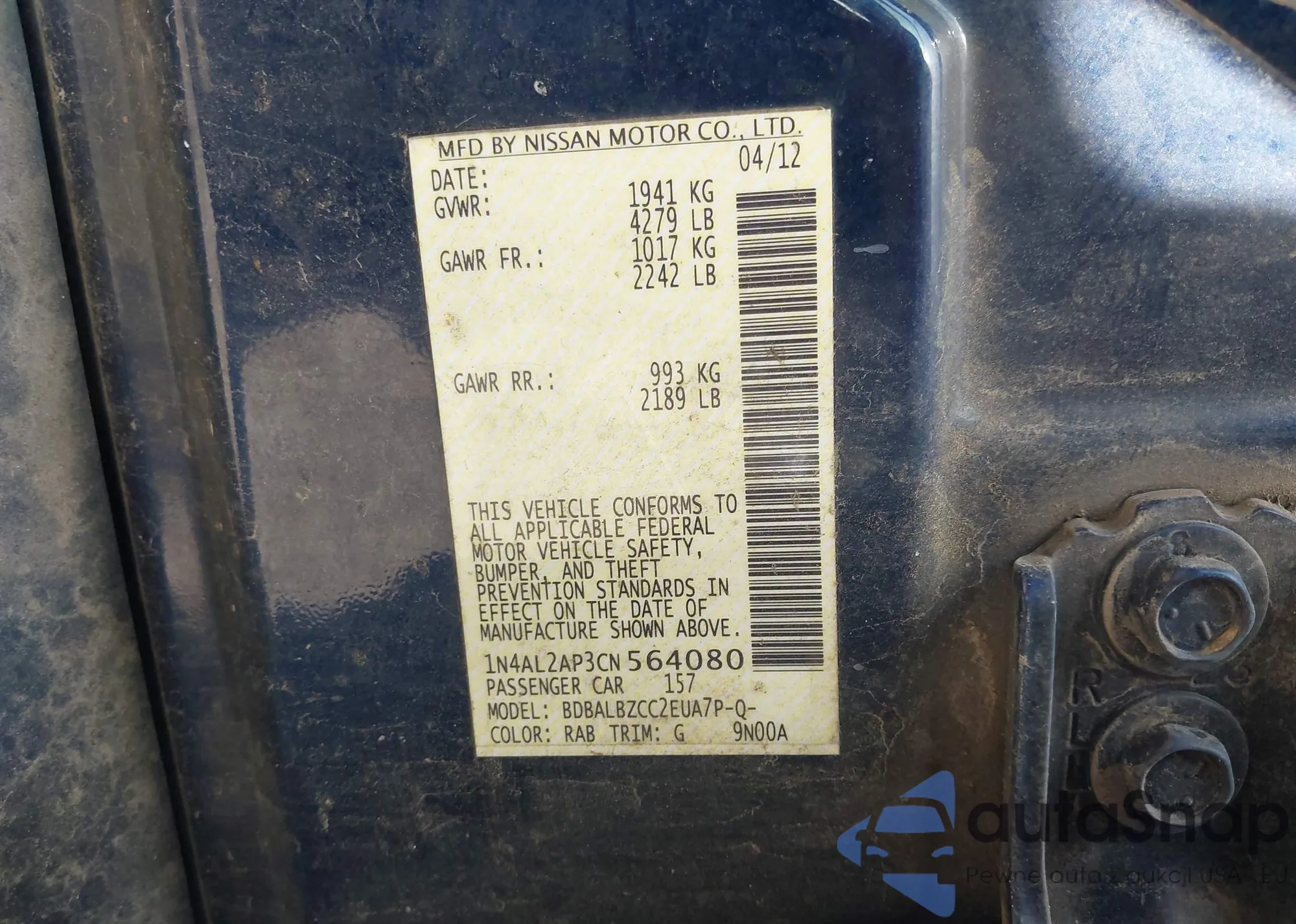 LOT: 42088455 VIN: 1N4AL2AP3CN564080