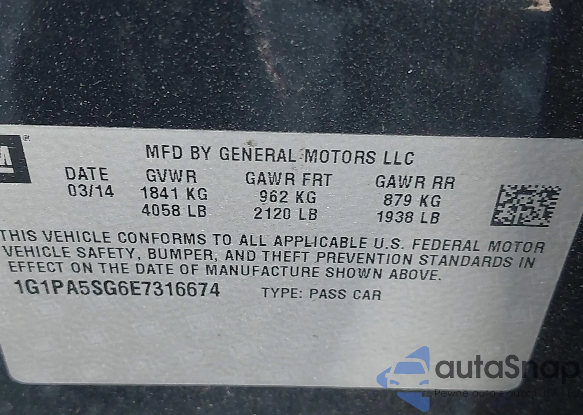 LOT: 42228080 VIN: 1G1PA5SG6E7316674