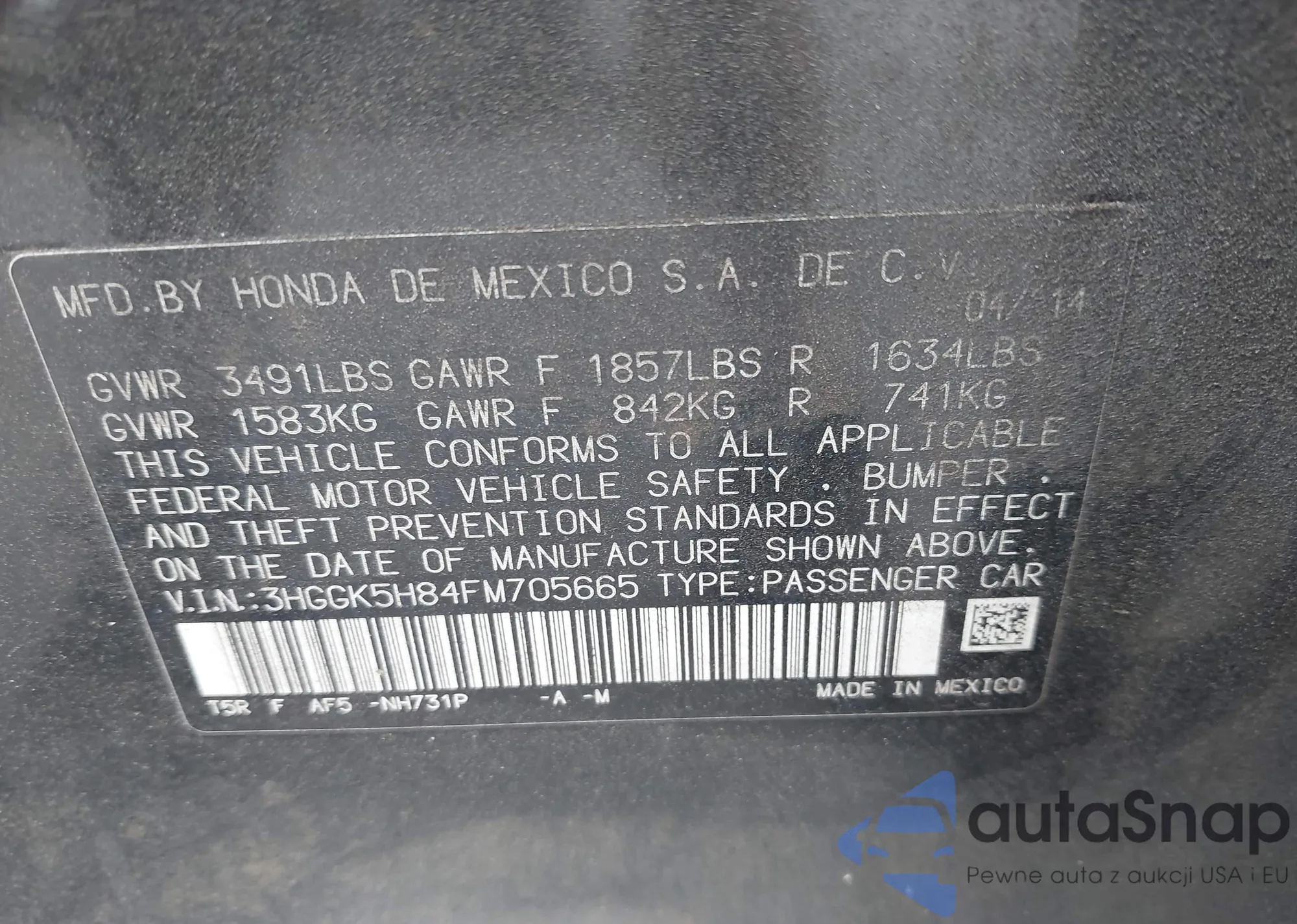 • VIN 3HGGK5H84FM705665
