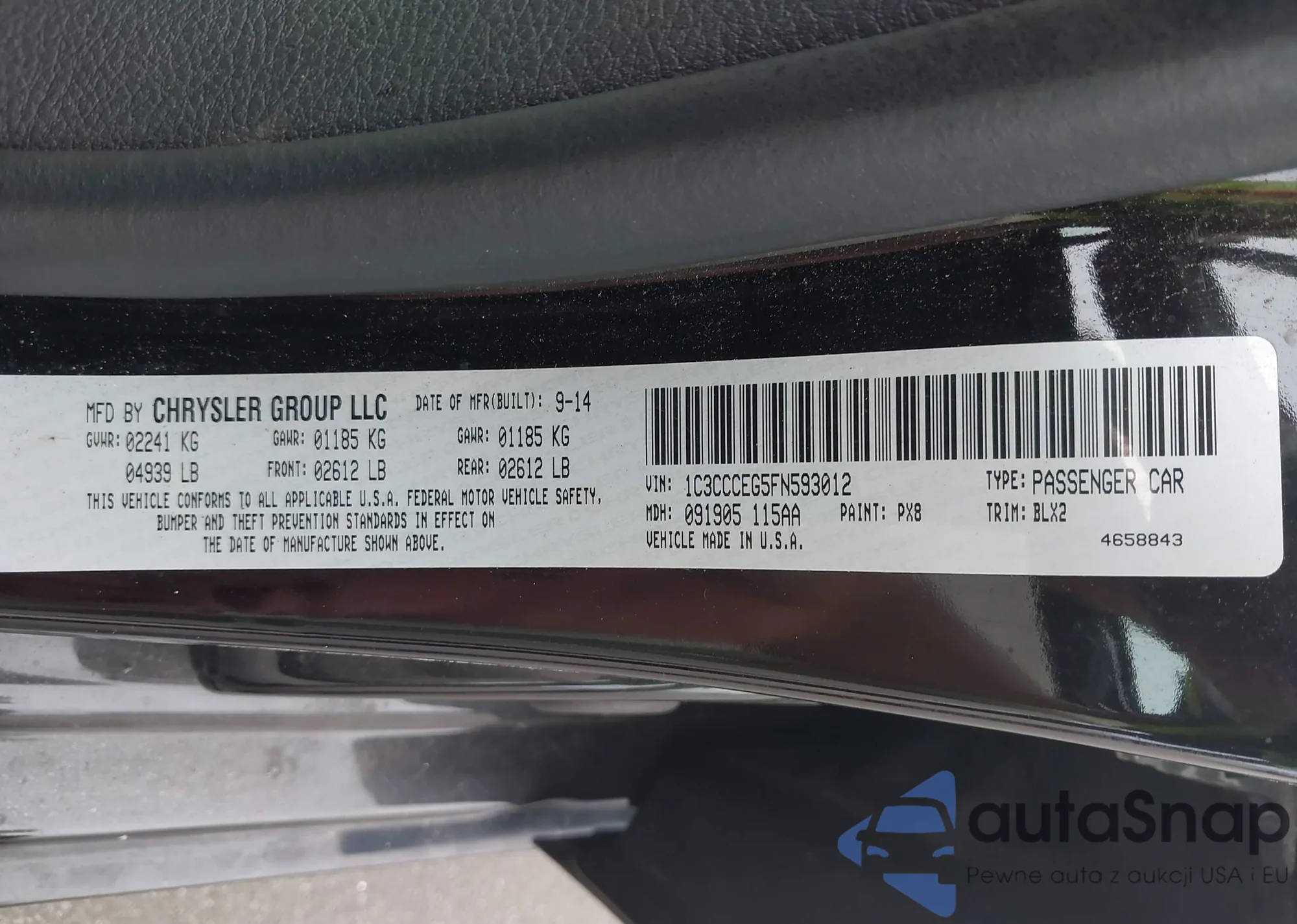 LOT: 43188368 VIN: 1C3CCCEG5FN593012