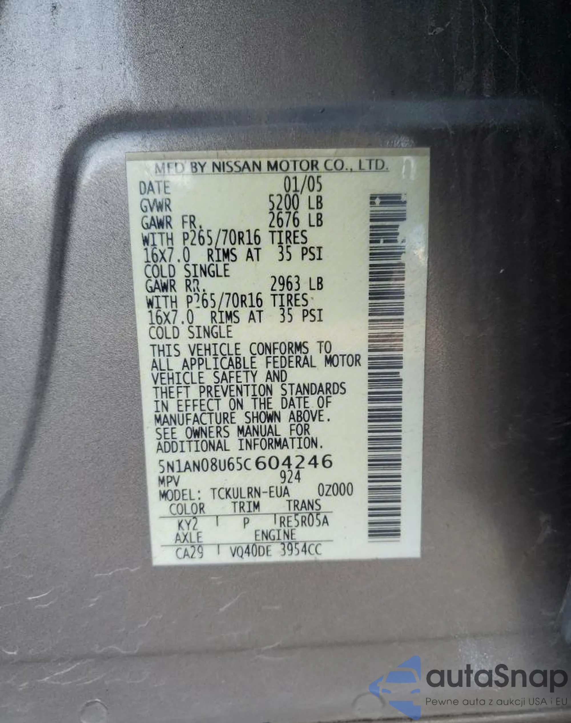 • VIN 5N1AN08U65C604246