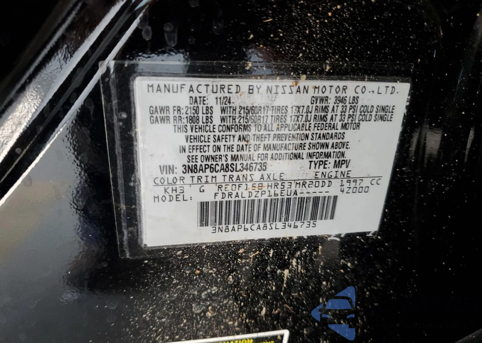 • VIN 3N8AP6CA8SL346735