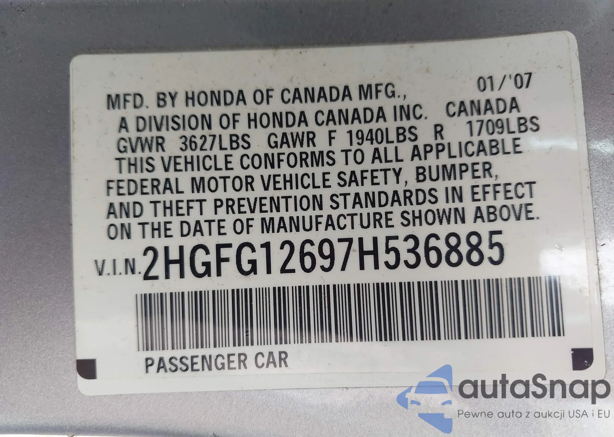 • VIN 2HGFA168X9H530464