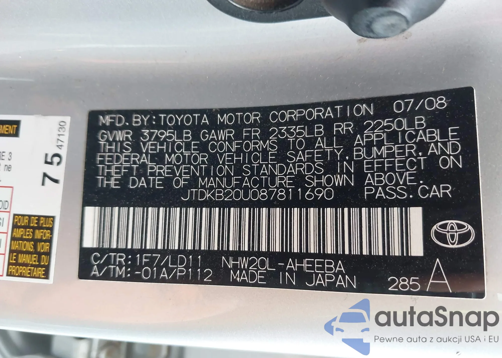 LOT: 43151626 VIN: JTDKC20U087811690