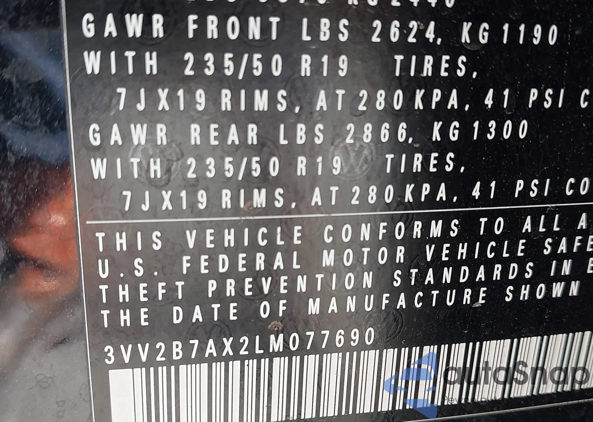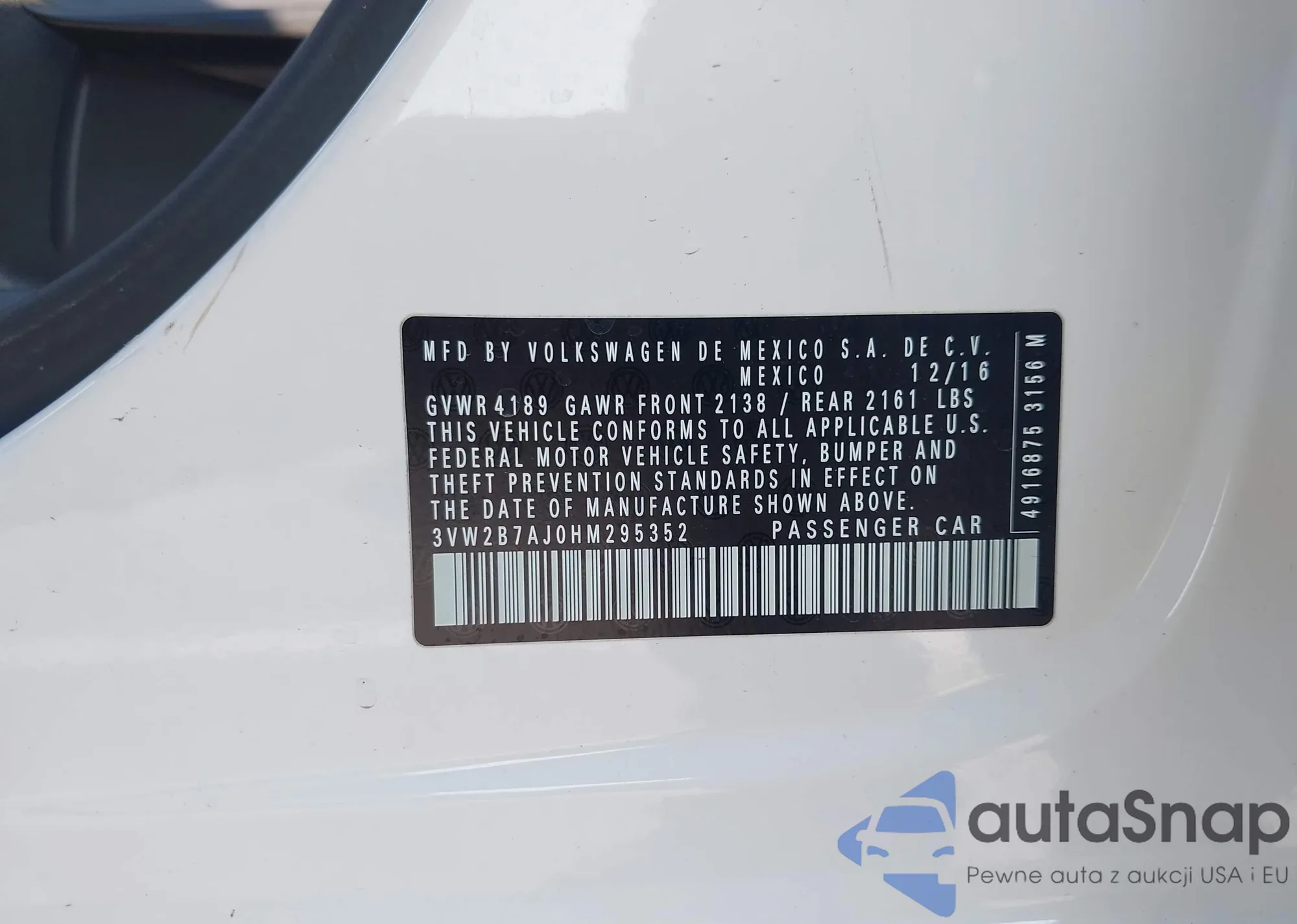 • VIN 3VW2B7AJ0HM295352