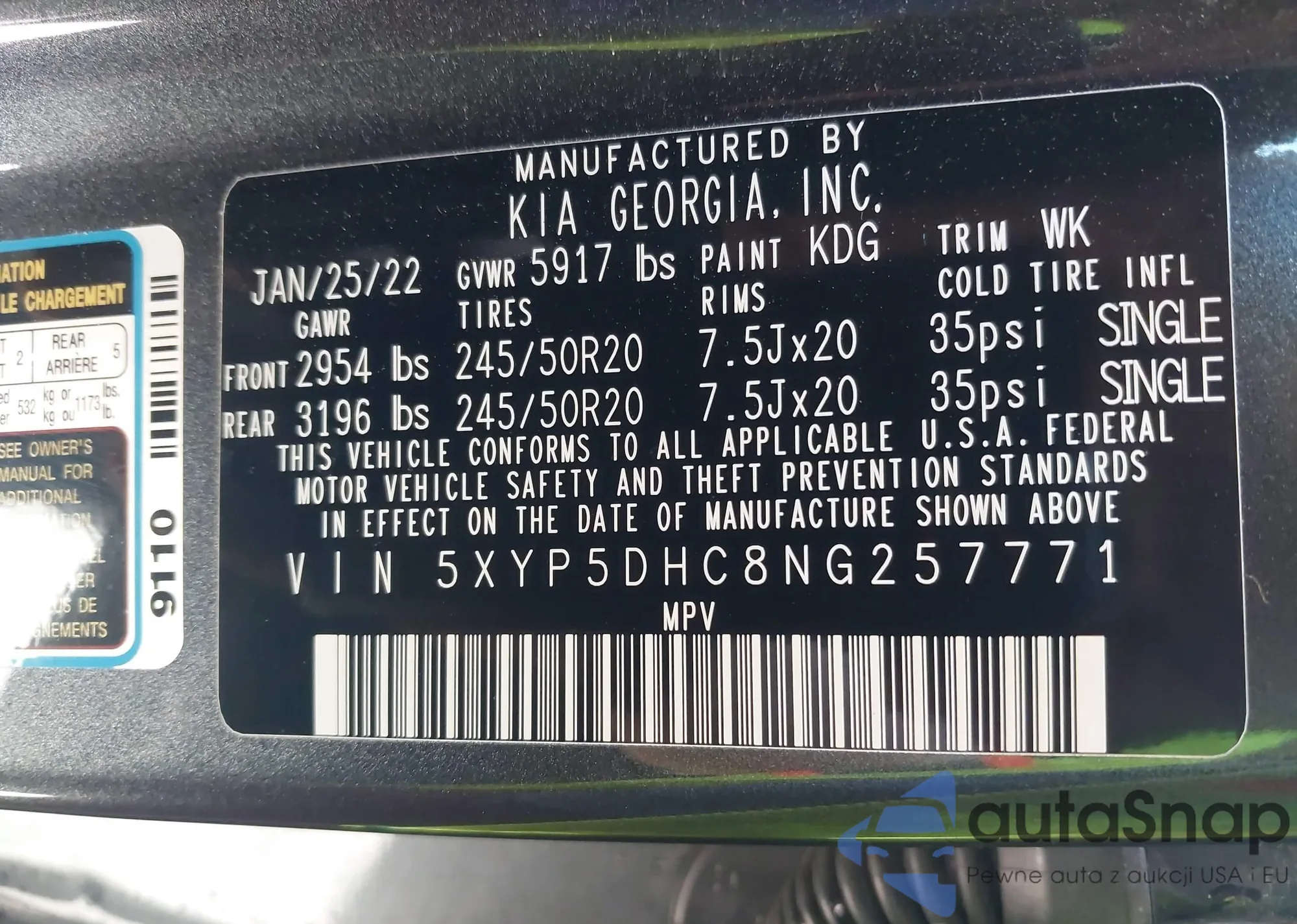 • VIN 5XYP5DHC8NG257771