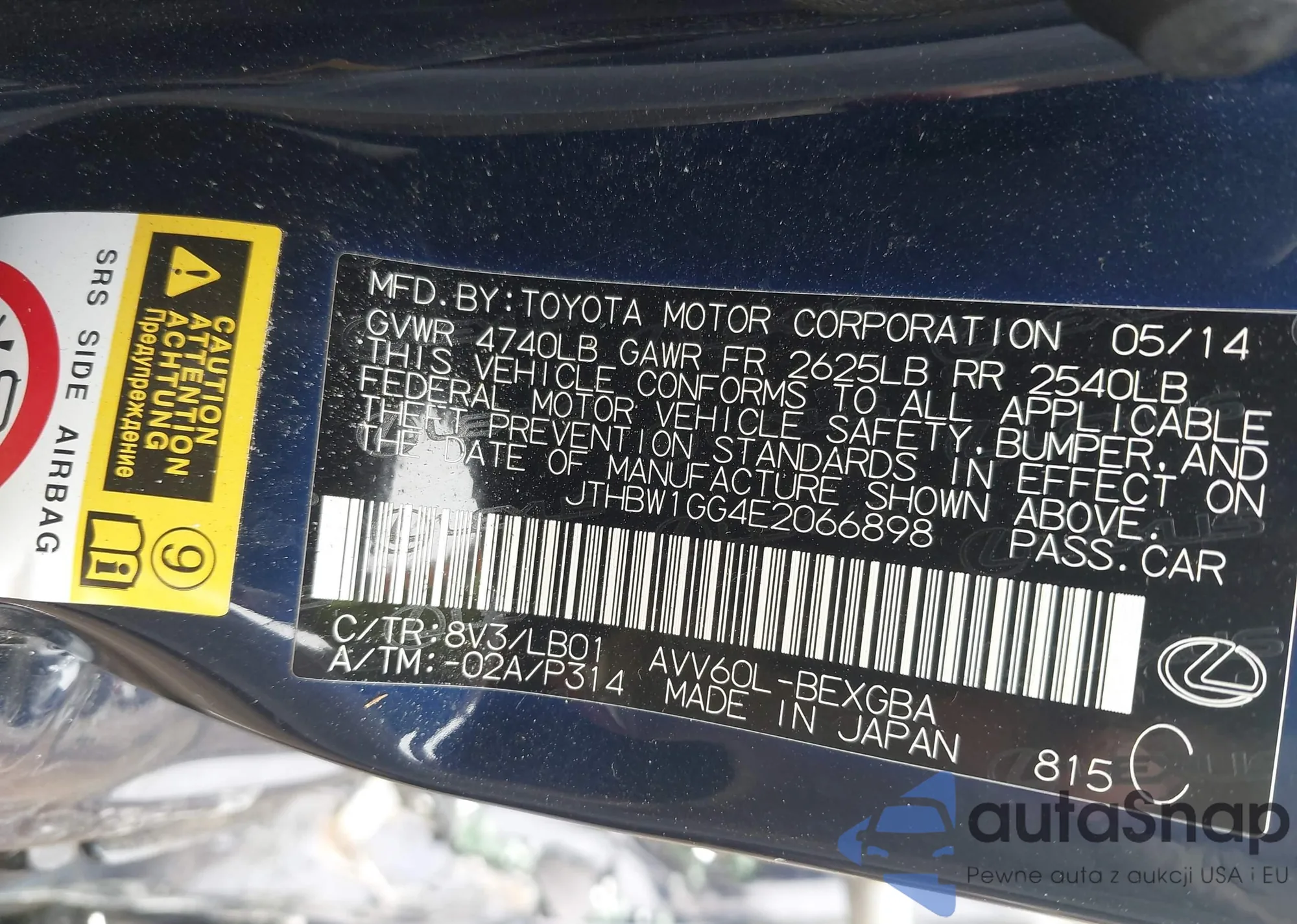 LOT: 42712584 VIN: JTHBW1GG4E2066898