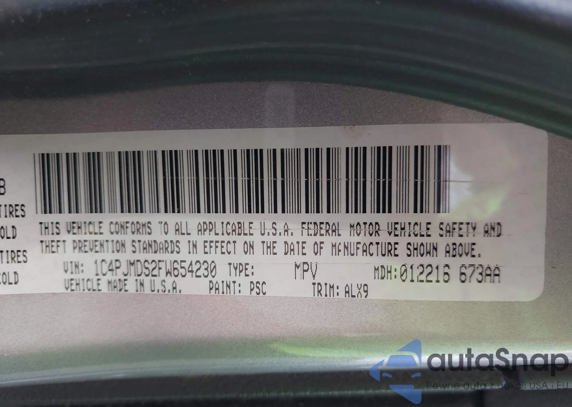 LOT: 42732477 VIN: 1C4PJMDS2FW654230