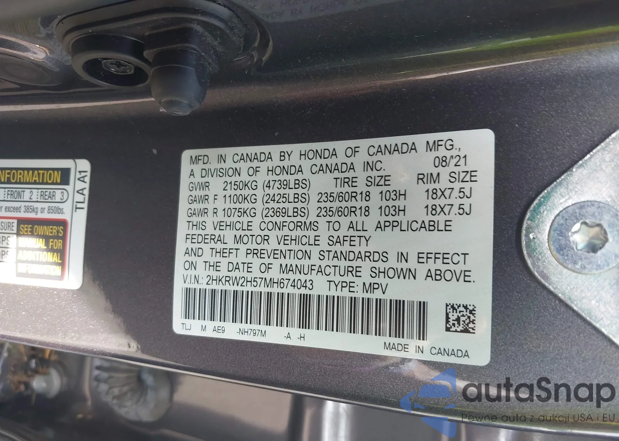 • VIN 2HKRW2H57MH674043