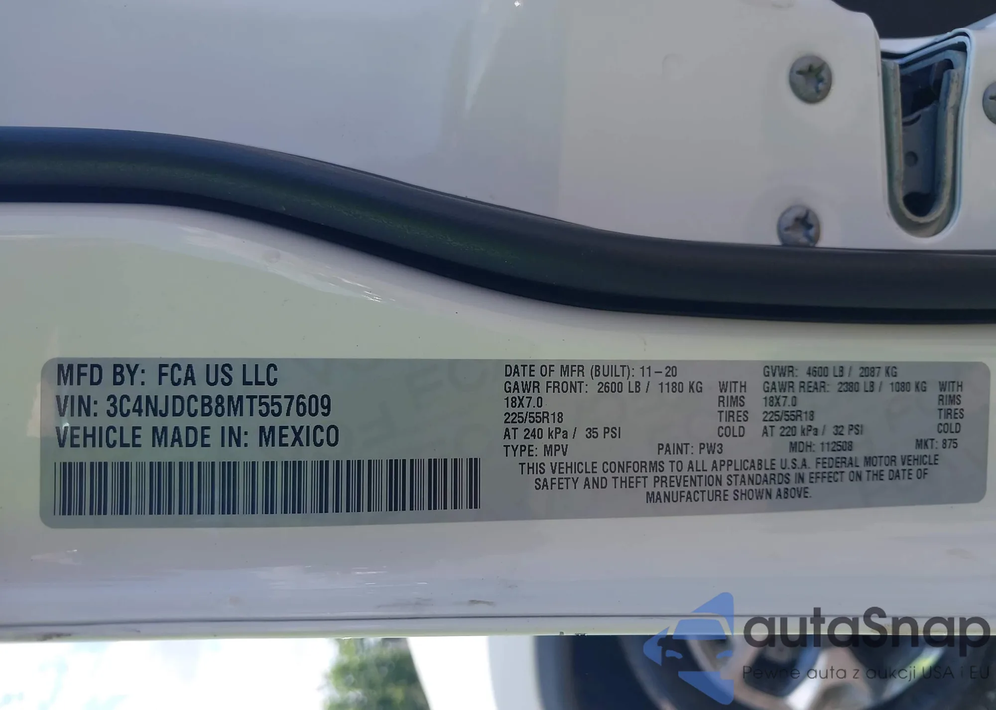 • VIN 3C4NJDCB8MT557609