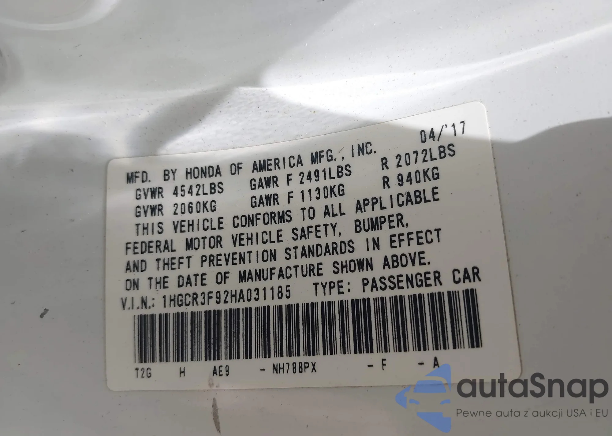• VIN 2HKRM4H34DH687915