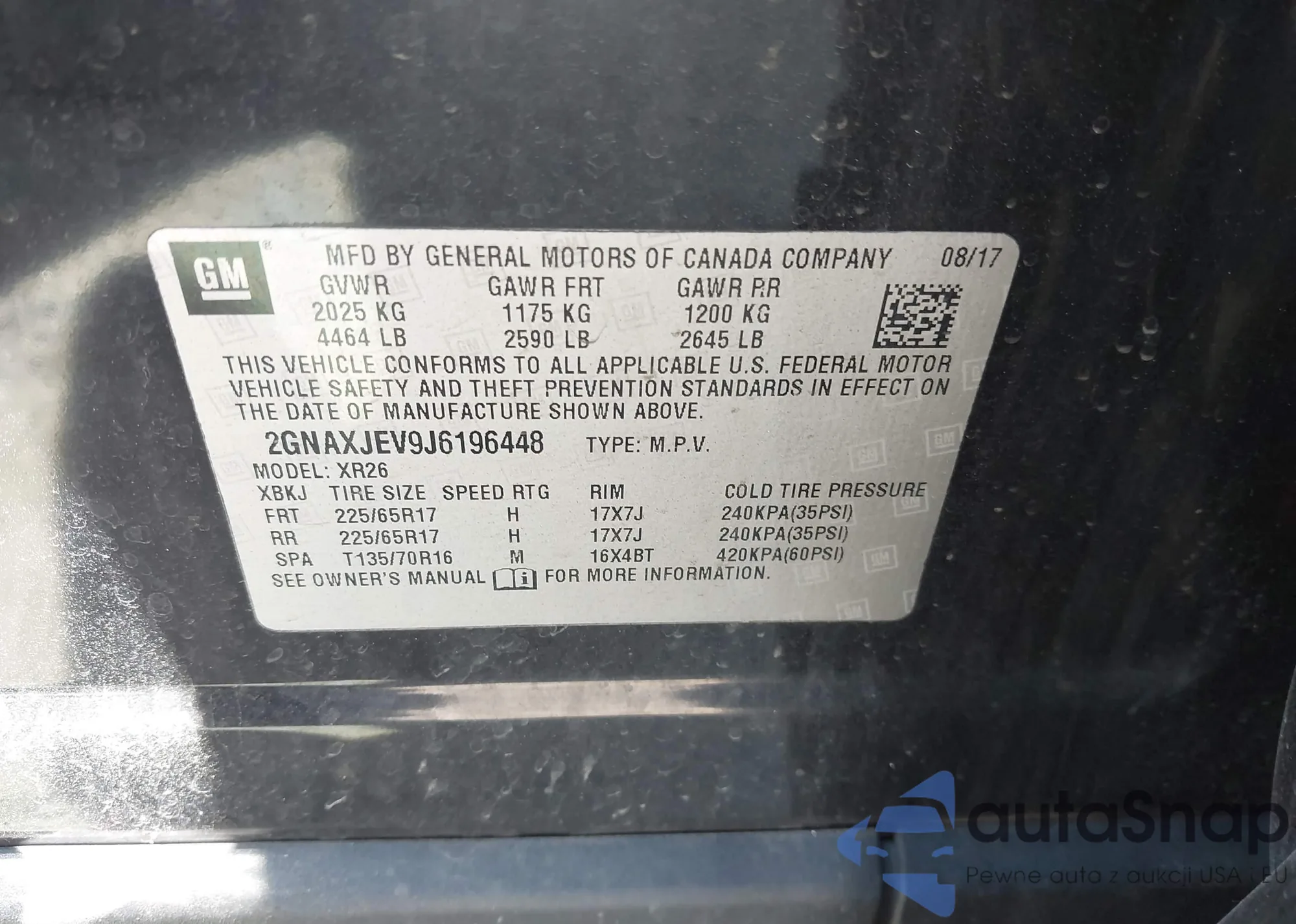 LOT: 42803761 VIN: 2GNAXJEV9J6196448