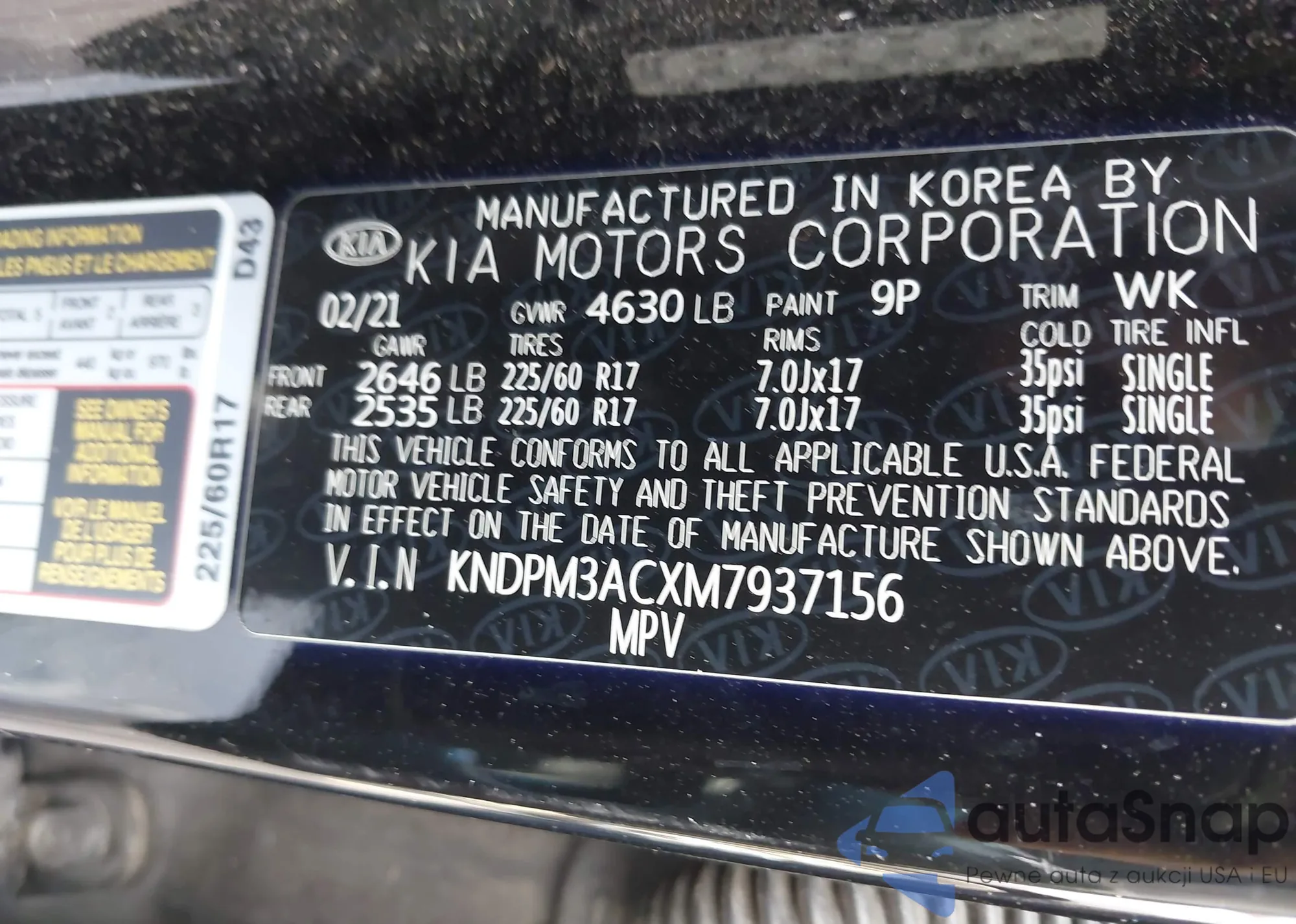 • VIN KNDPM3ACXM7937156