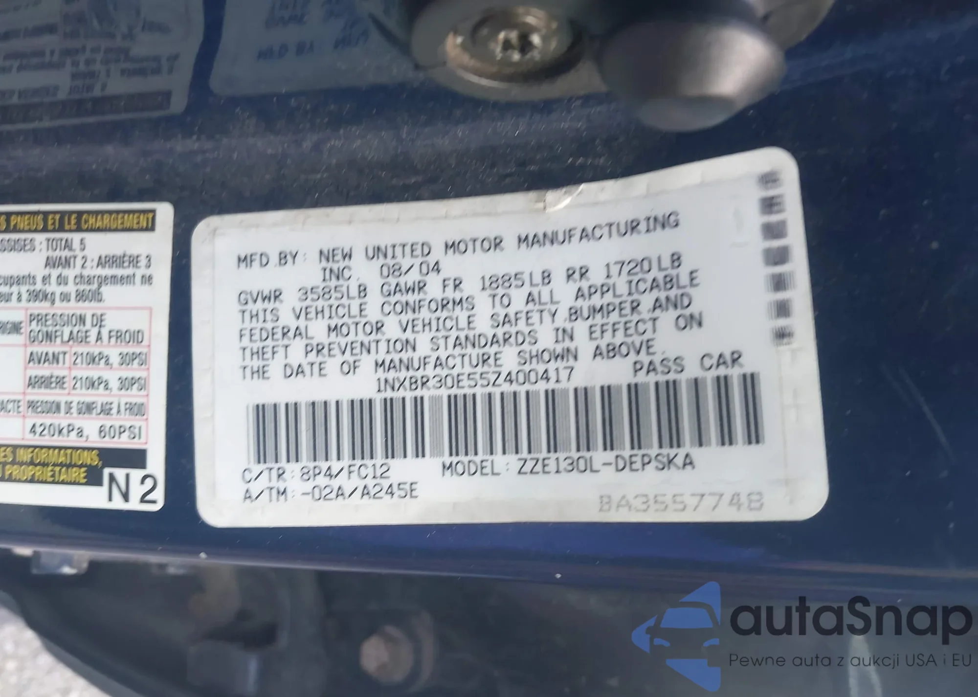 LOT: 43090875 VIN: 1NXBR30E55Z400417