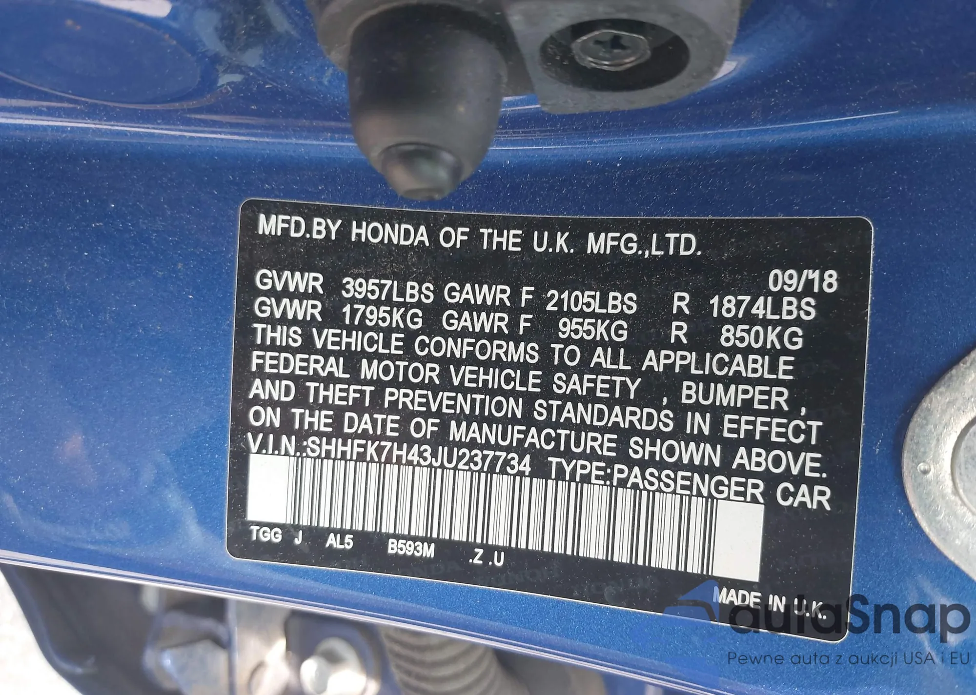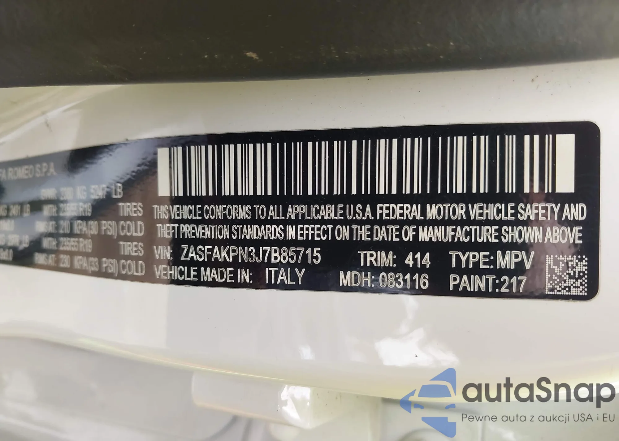 LOT: 42248109 VIN: ZASFAKPN3J7B85715