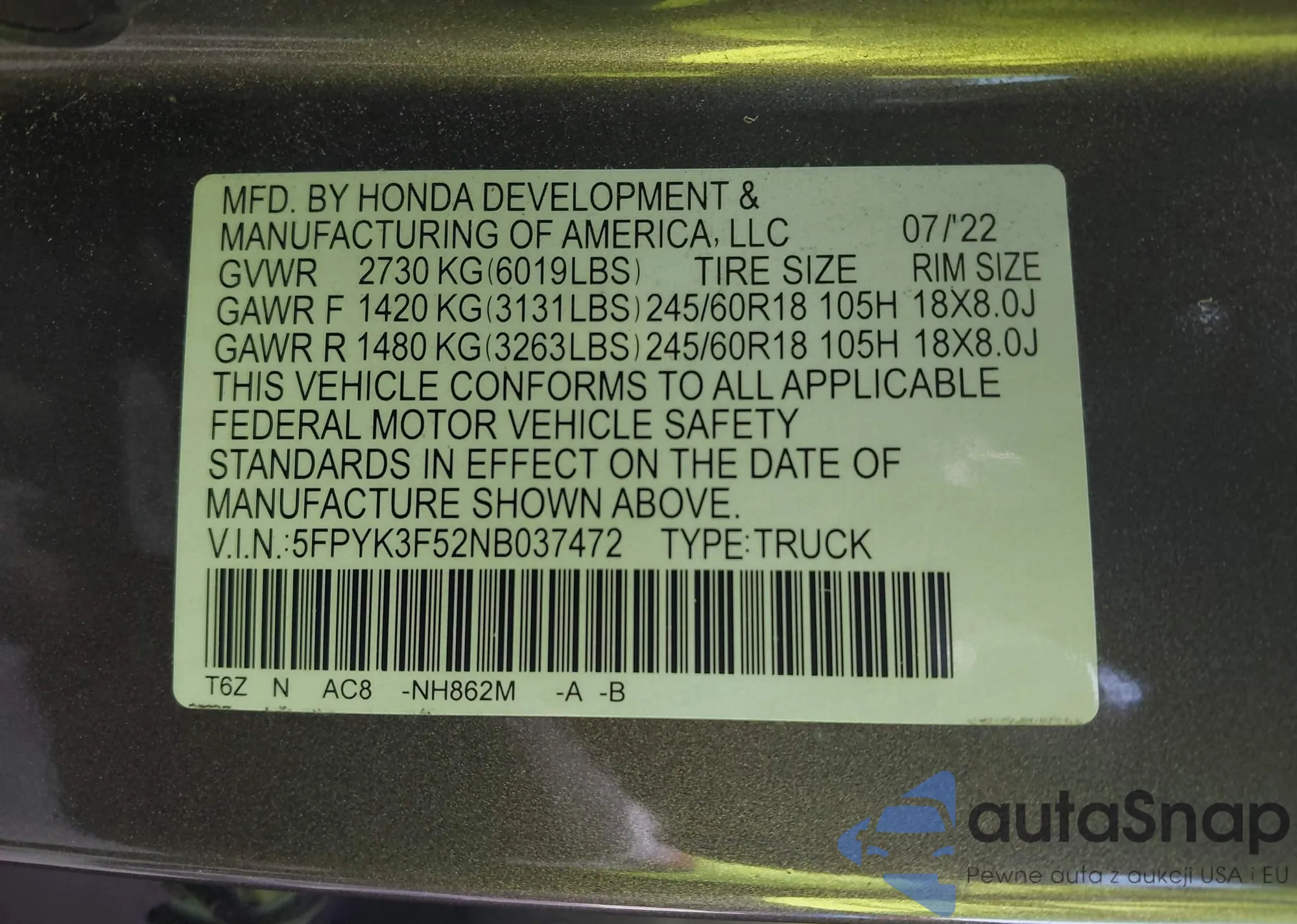 • VIN 3TMCZ5AN3NM530493