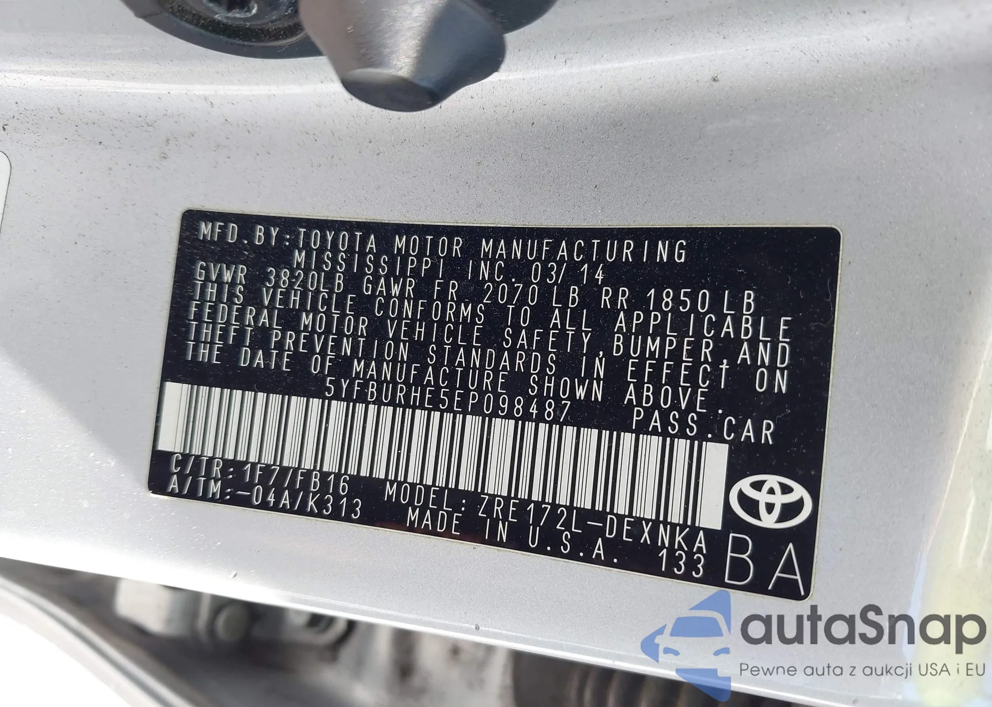 • VIN 5YFBURHE5EP098487