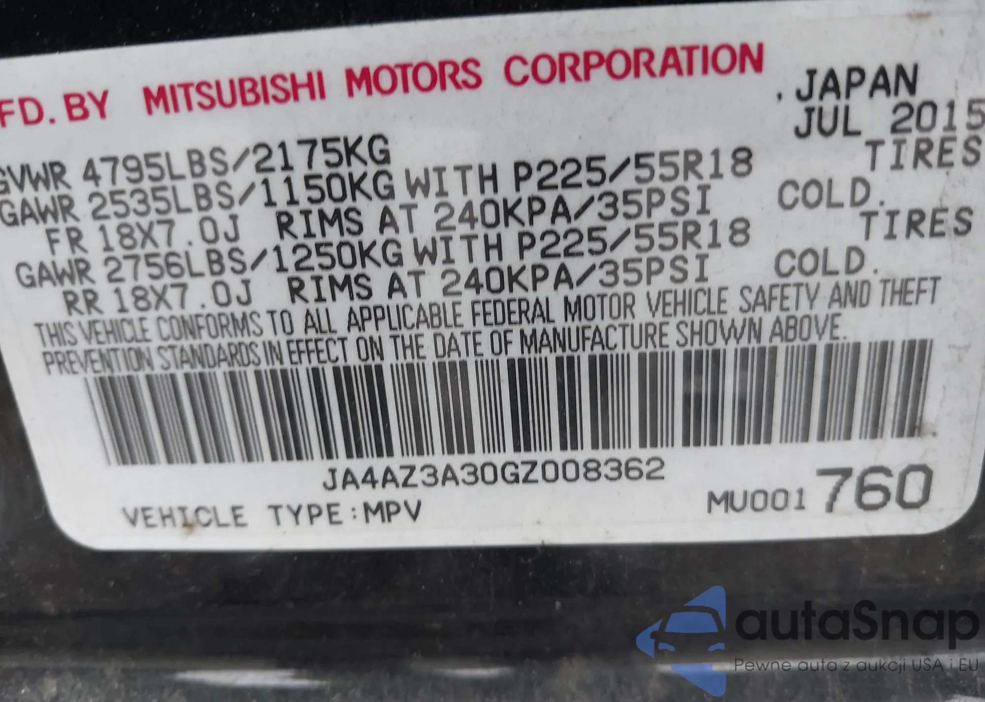 • VIN JA4AZ3A30GZ008362